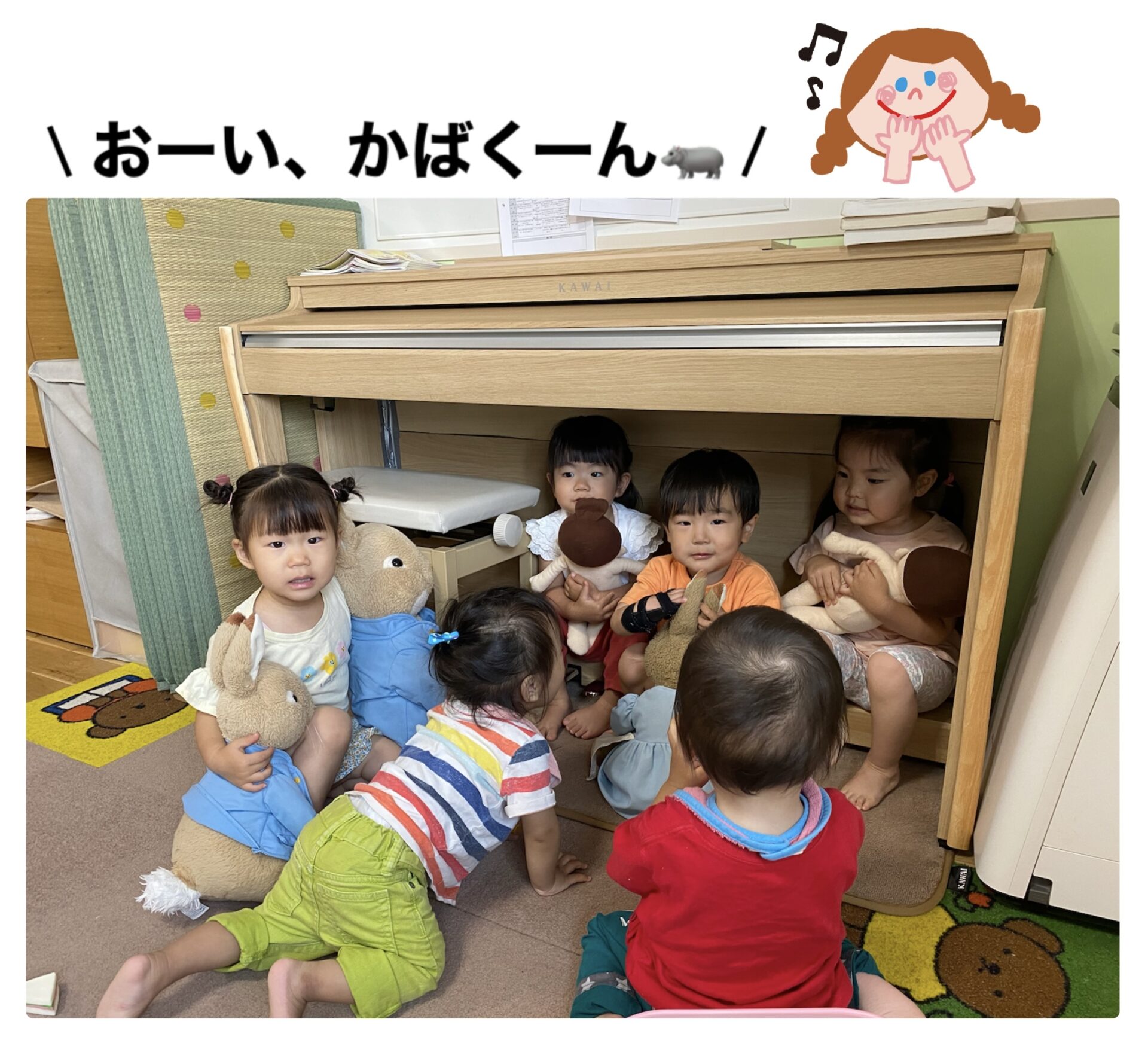 今日はピアノの下で集まって「おーい、おーい、かばくん🎶」と楽しそうに歌っていましたよ😙🩵