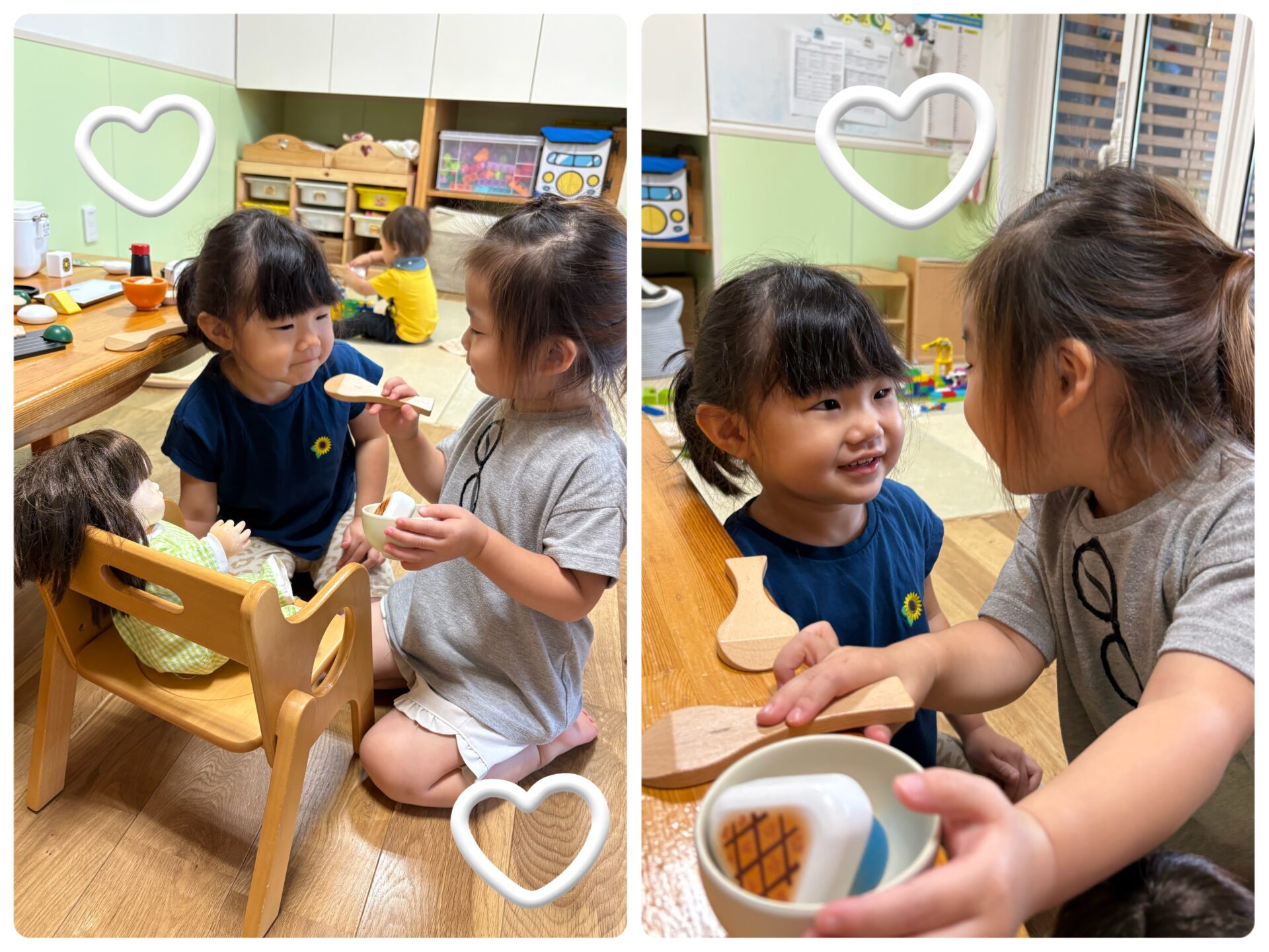 お友だちが遊ぶ姿を見て「私も!」と、遊びを真似たり、一緒に遊んだりと関わり合う姿も多く見られました✨