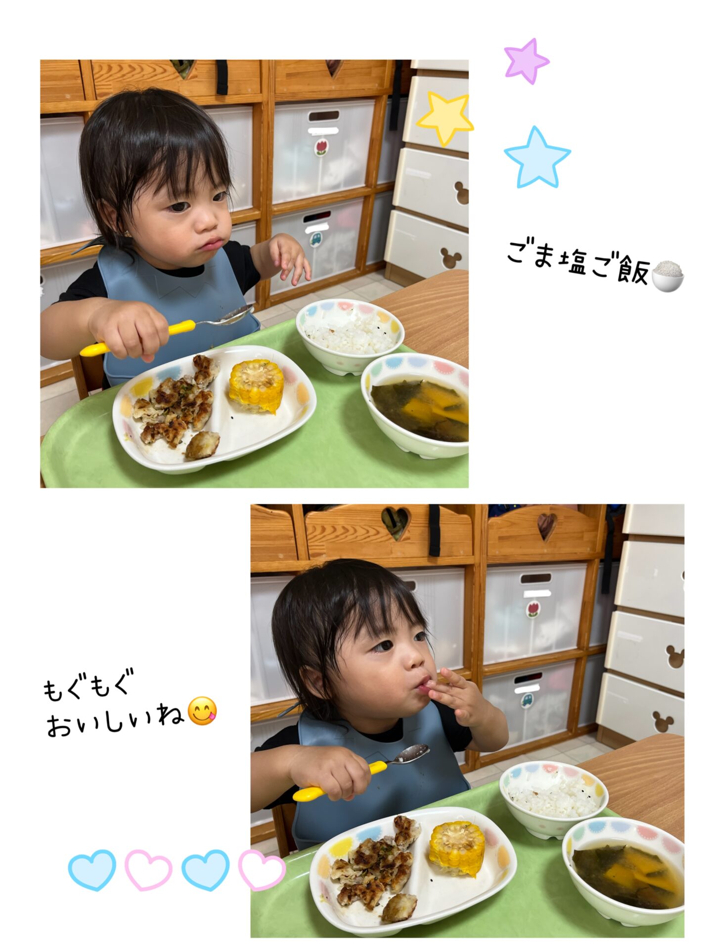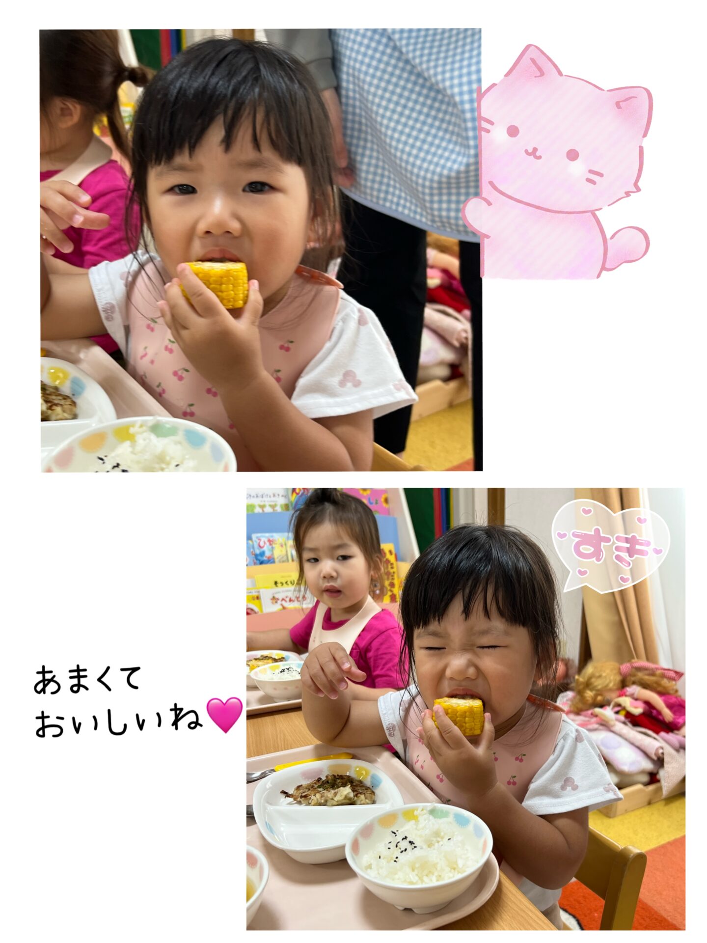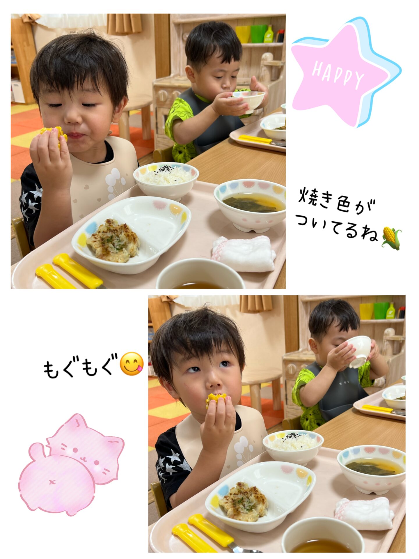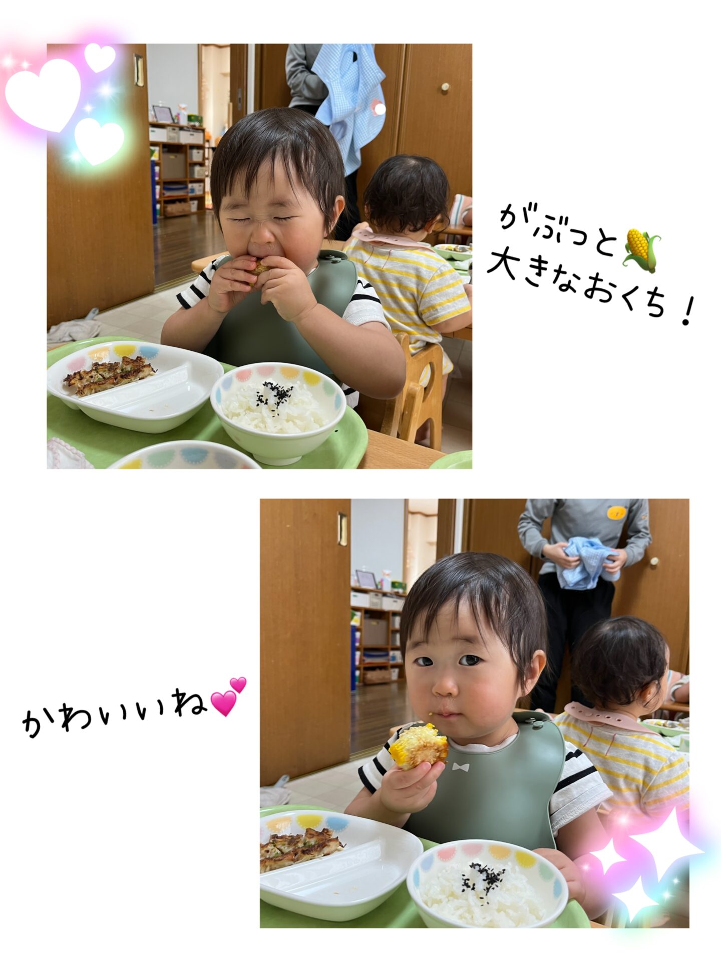 コーンだぁ🌽と嬉しそうにぱくぱく
