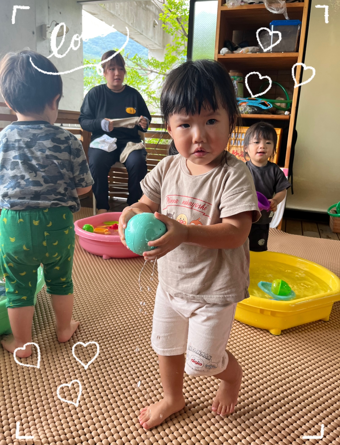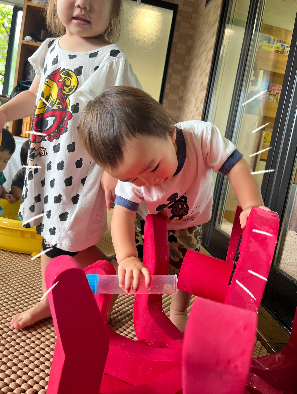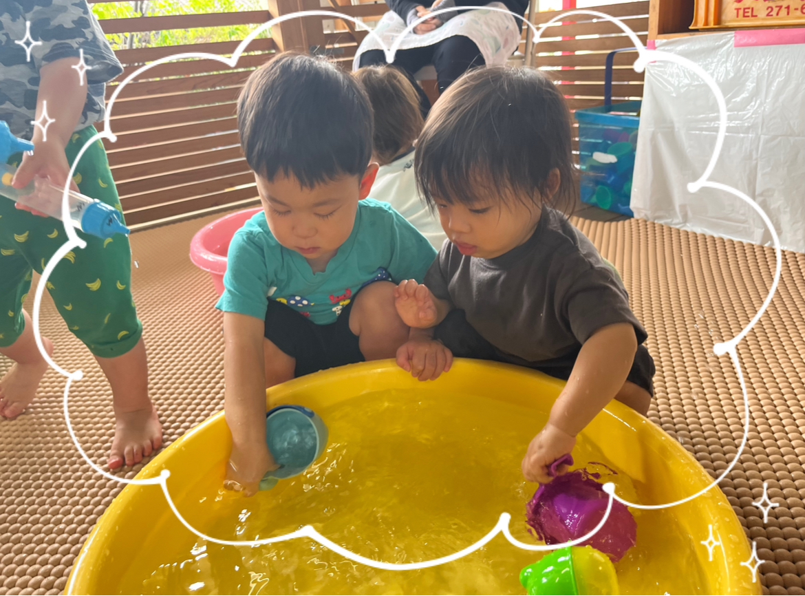 HくんとKくんは、お仕事をしているかのように黙々と協力してお互いの容器に水を入れあいっこしている姿がなんともかわいかったです😂💕