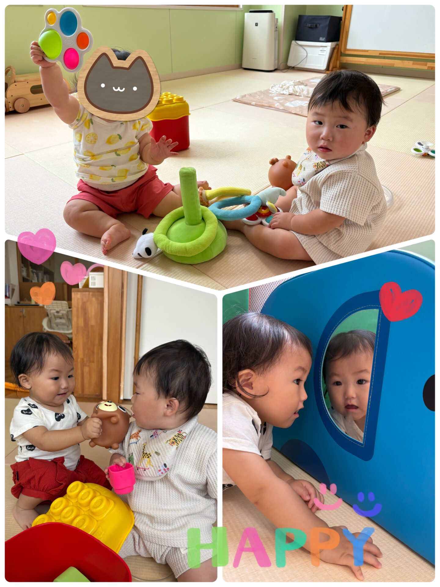 今日は第一園舎、第二園舎の0歳さんたち、一緒に遊びました☺️