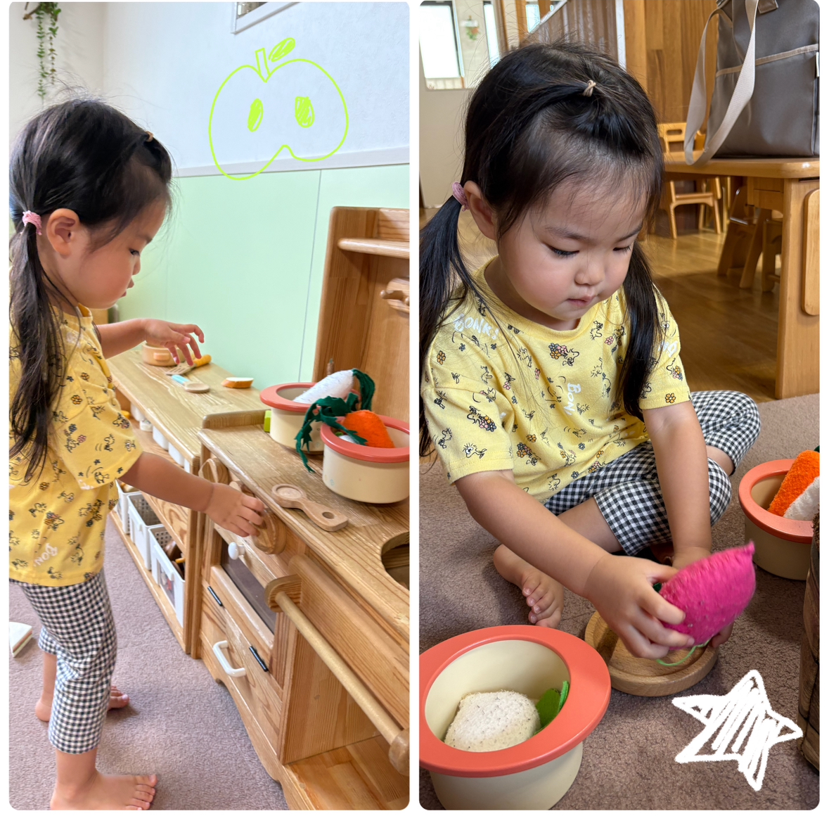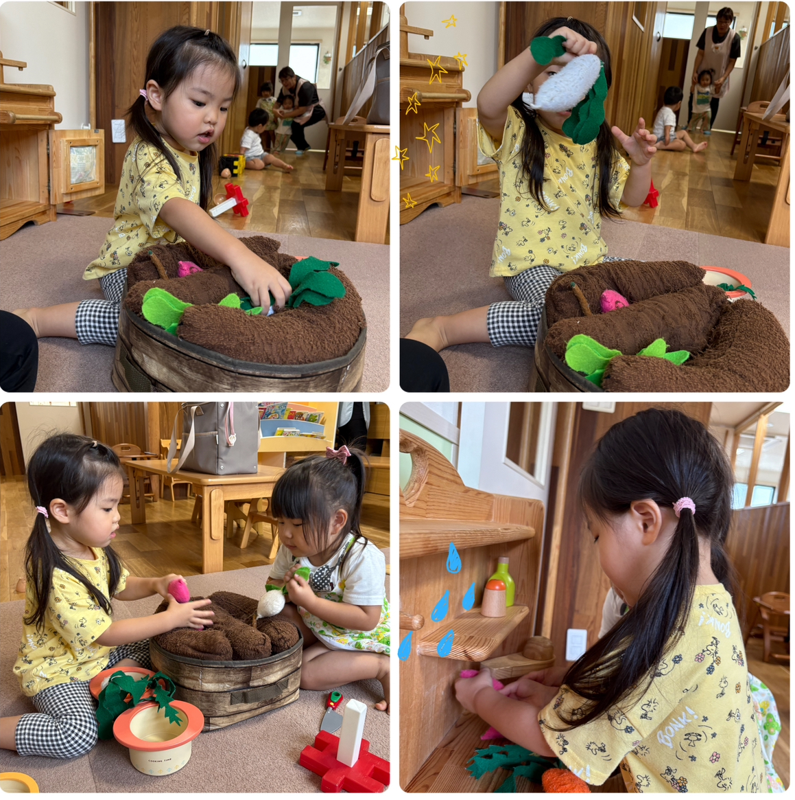 水で洗って😊火を通して…どんどんごっこ遊びも本格的になってきています🍳