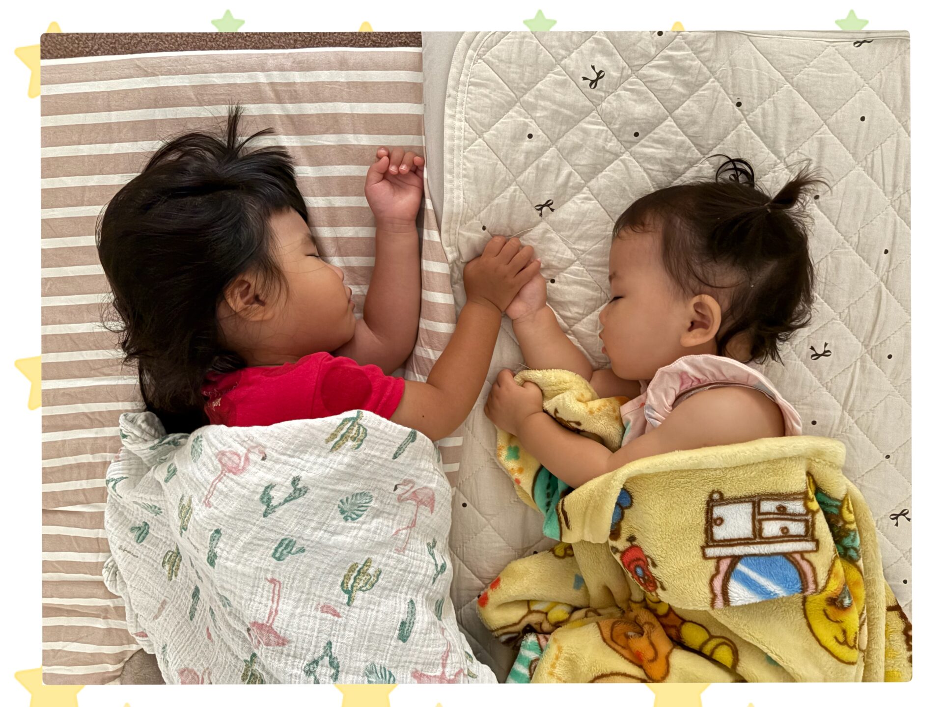 寝返りをしたNちゃんの手がちょうどNちゃんの手に☺️