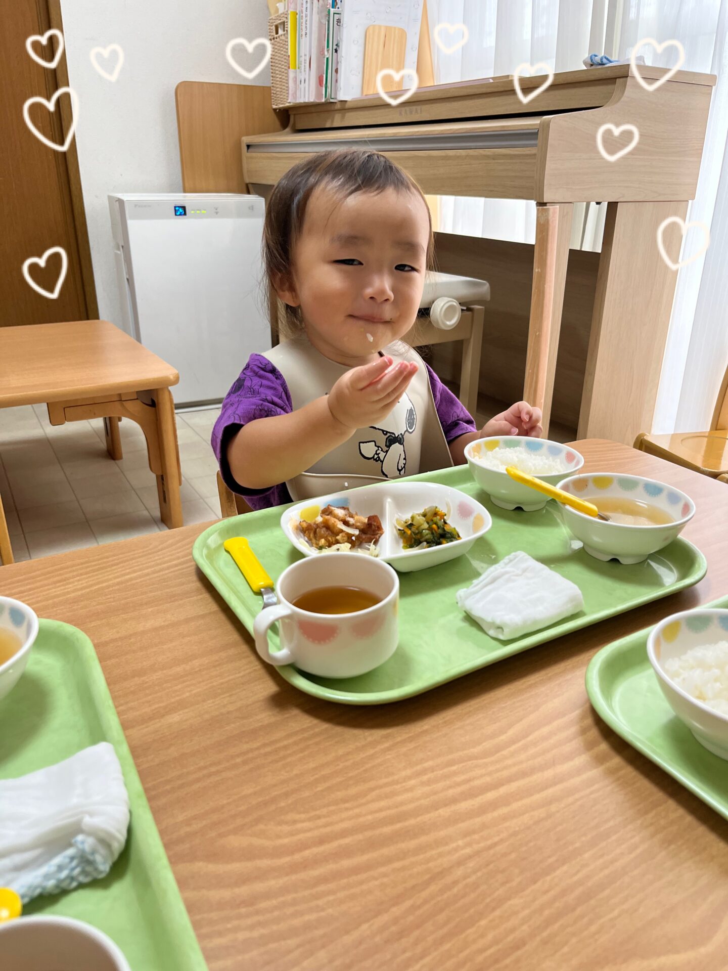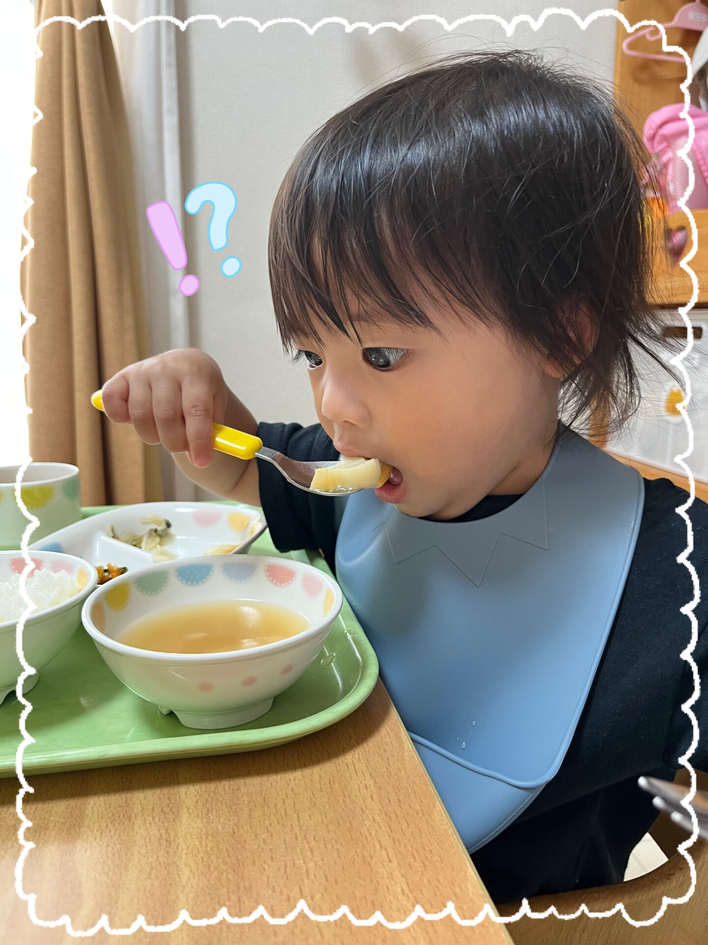 じゅわ〜っと、おみそ汁のしみたお麩をパクりと食べるHくんとKくん😋