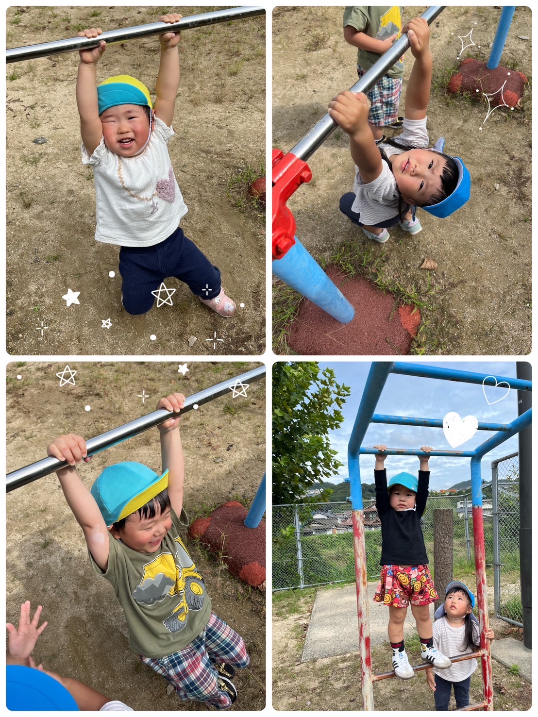 鉄棒やうんていに、ぶらーーんとぶら下がって 「みてみてー😙」ととっても嬉しそうでした💓