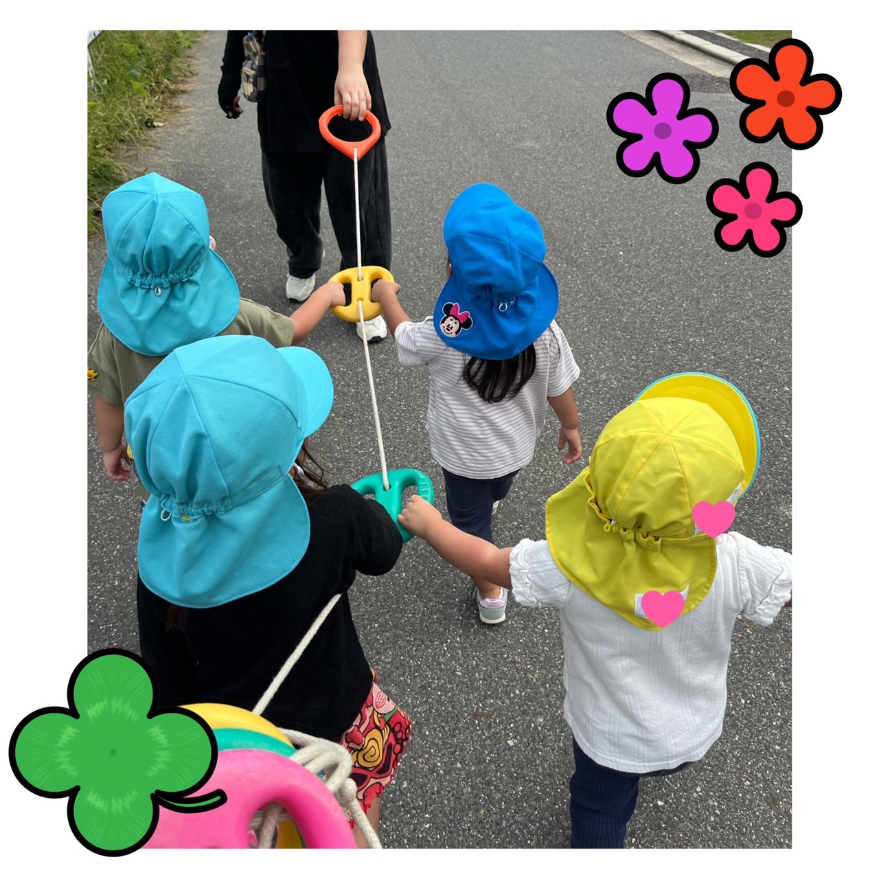 帰りは、小さいさんのKちゃんも ロープを持ってしっかりと歩いて帰りました☺️