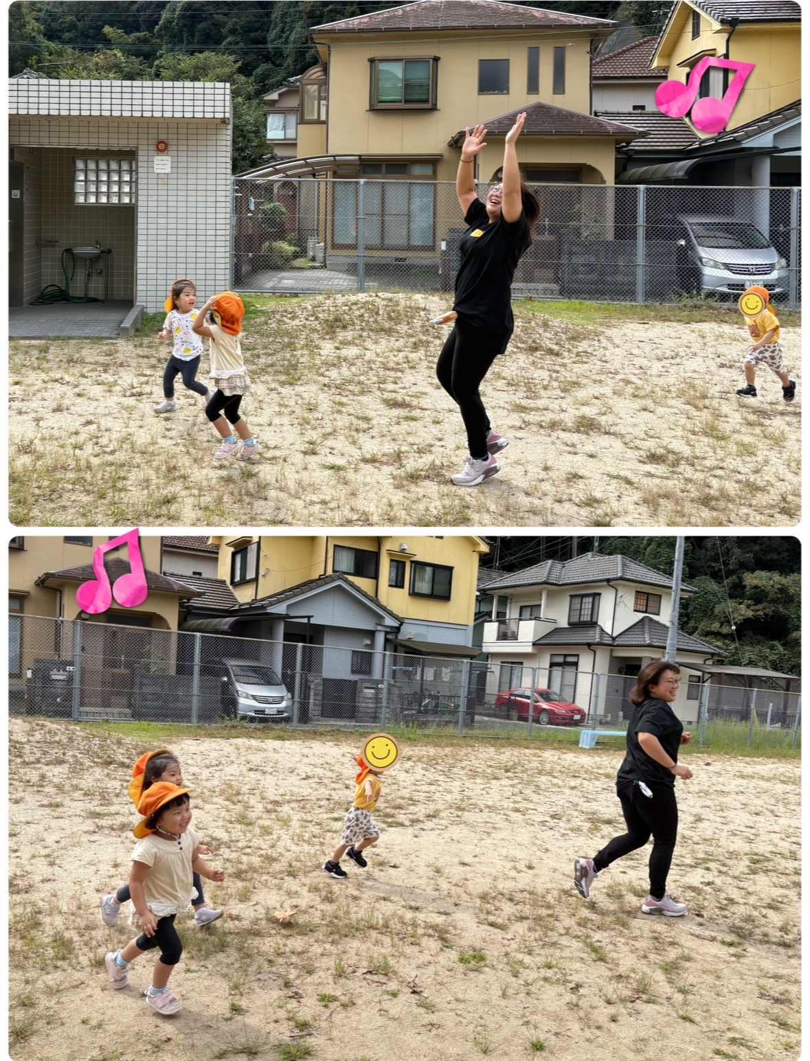 トンボを追いかける H先生と大きいさん達💨すーいすいと、向きを変えながら飛んでいくので「まてまてーー👋」といろんな方向に走って面白かったね🌟