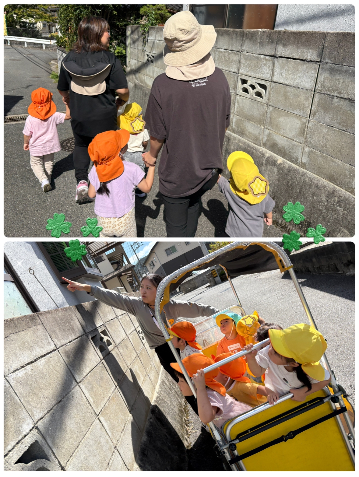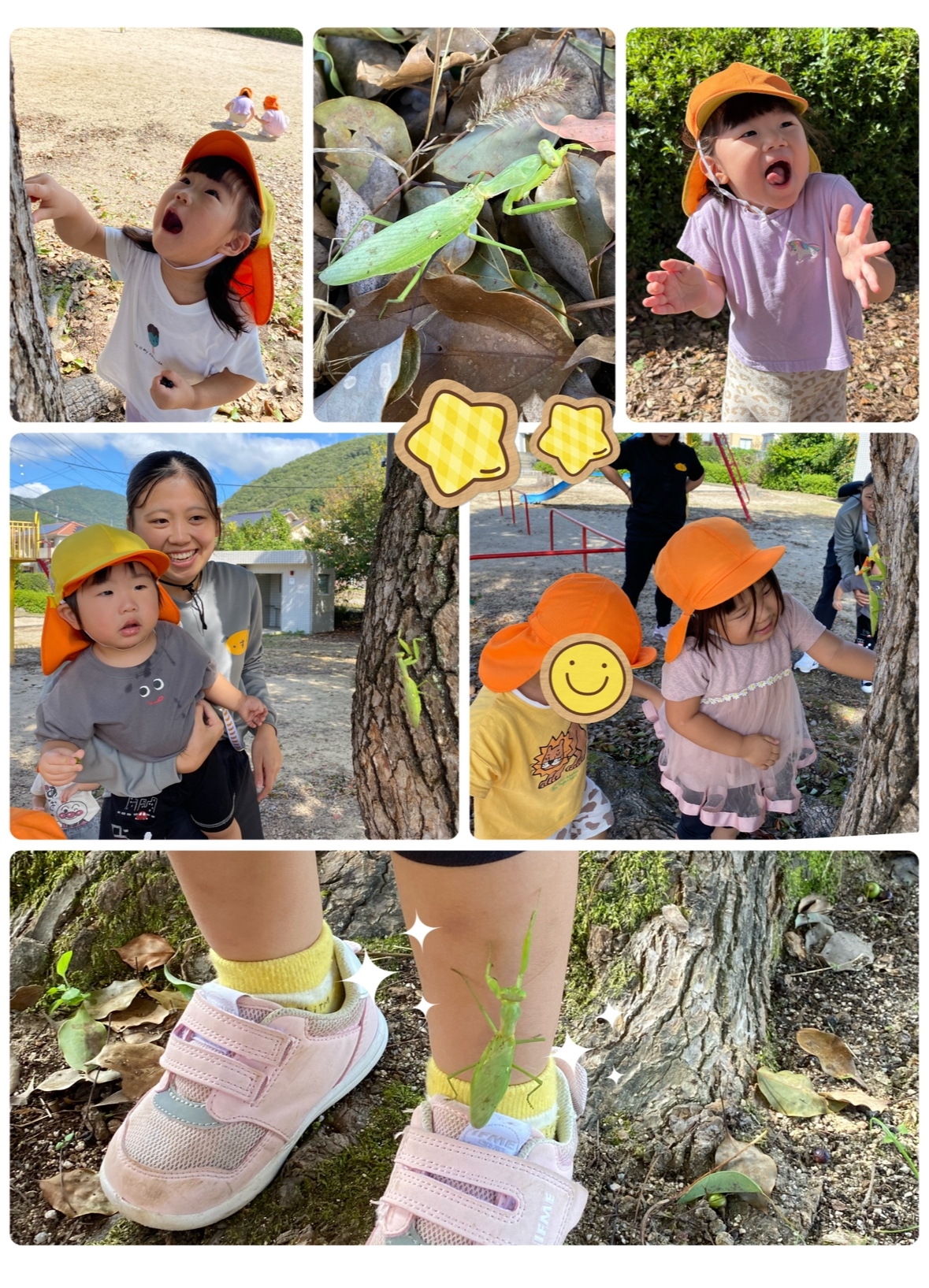 その時…カマキリが…👀‼️みんな興味津々!木の上に登っていくカマキリを見てMちゃんが、"触りたい”というとH先生が捕まえてくれて触ることに大成功🌟みんなも近くで見れて楽しかったね〜〜♪