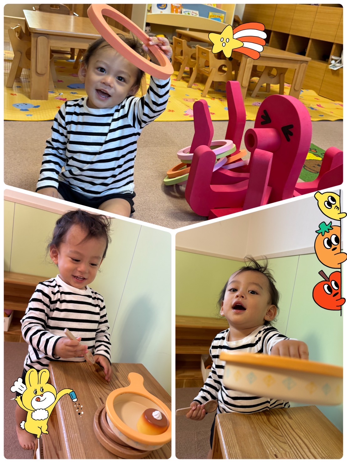 Iくんはお部屋でたこさんの輪投げをしたり、おままごとをしたりしました🧑🍳