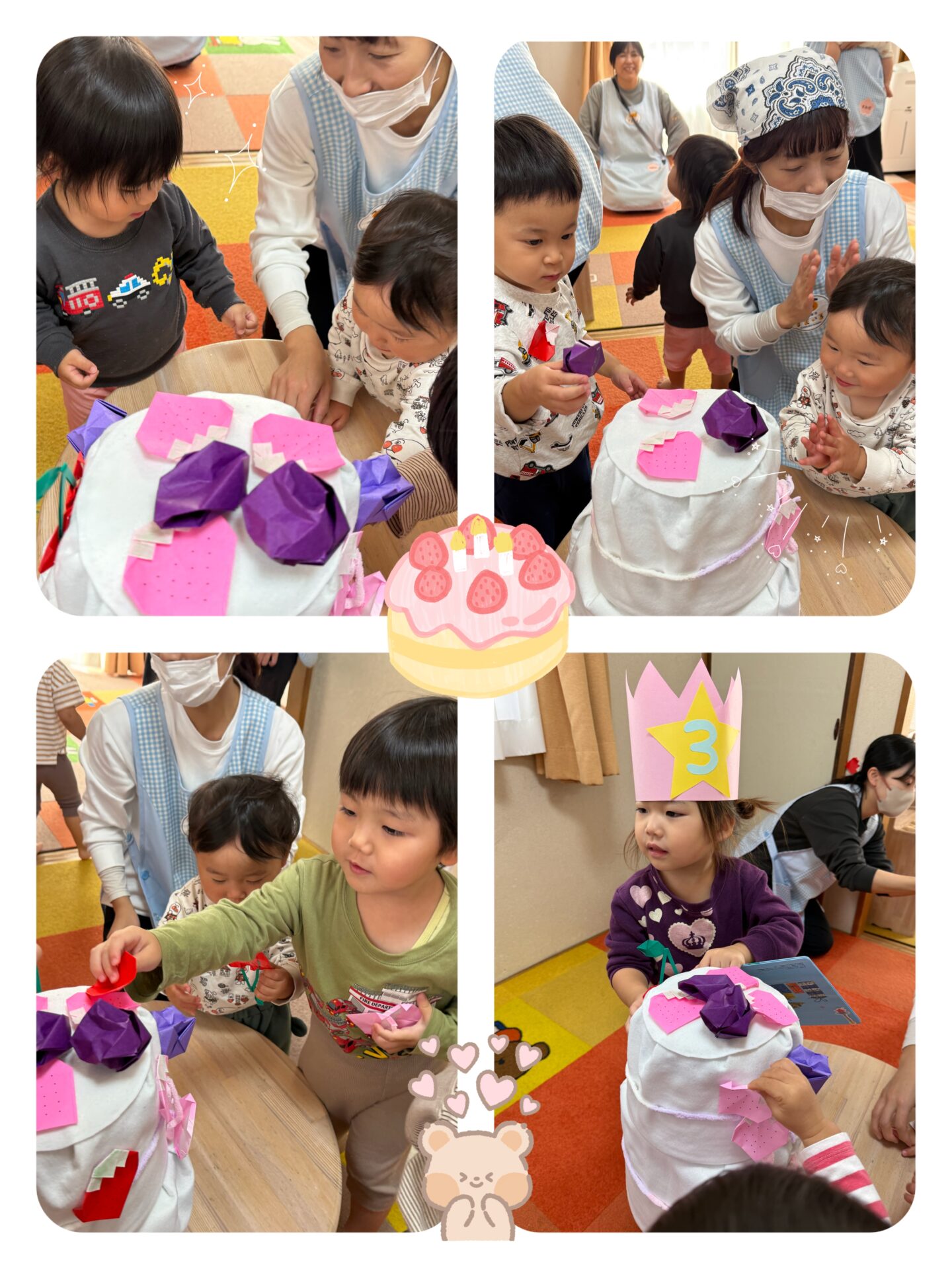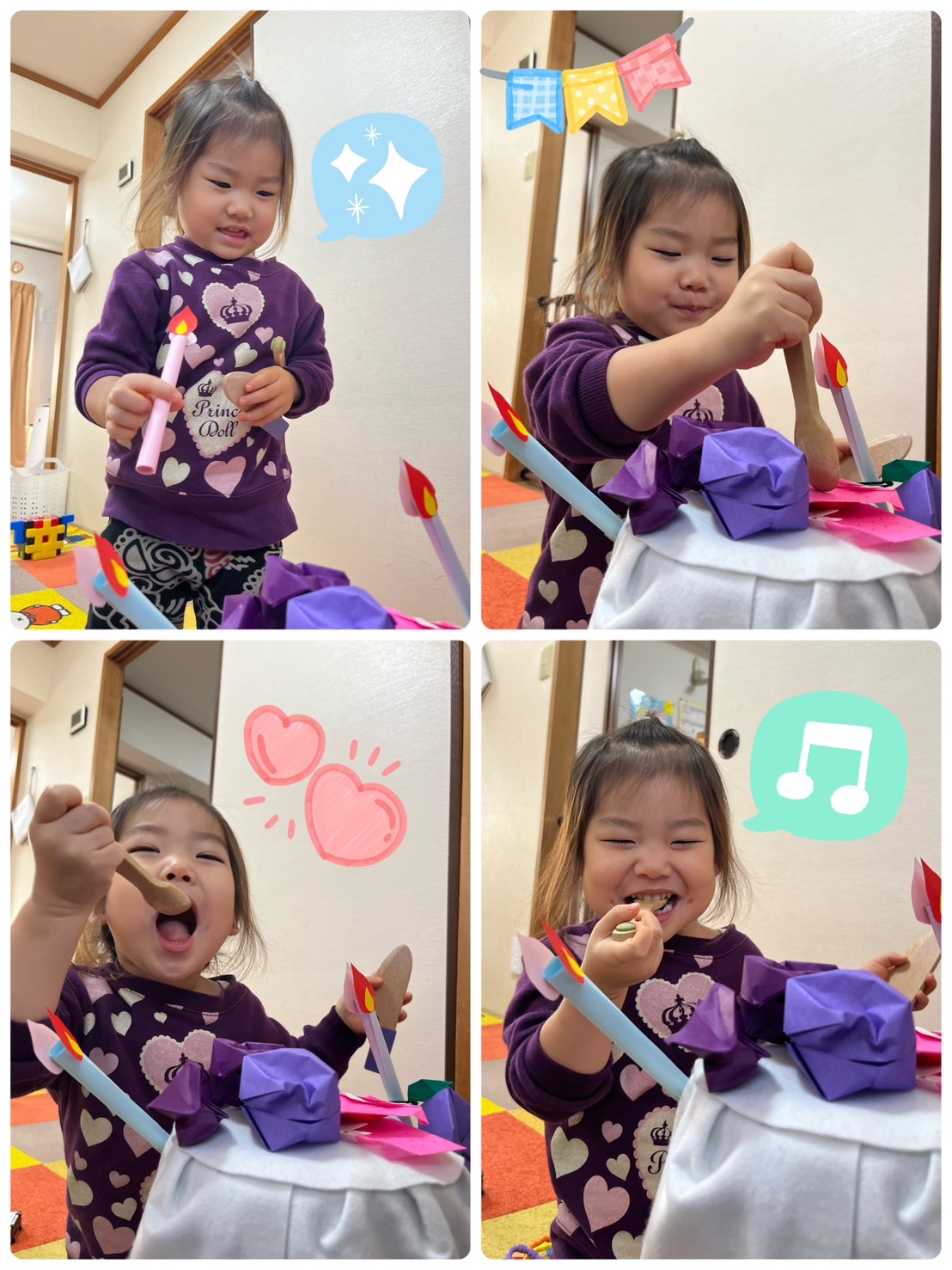 Rちゃんは「Rちゃんのお誕生日ケーキだよ〜」