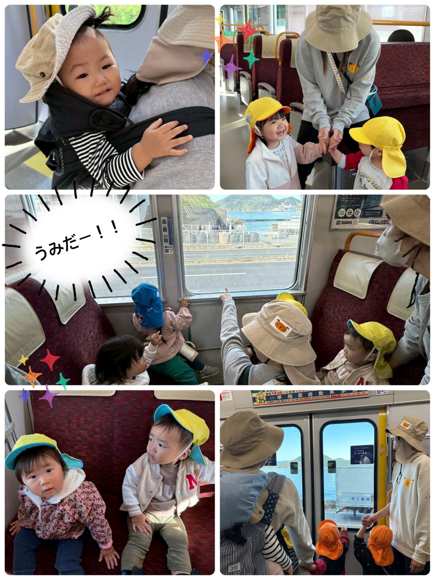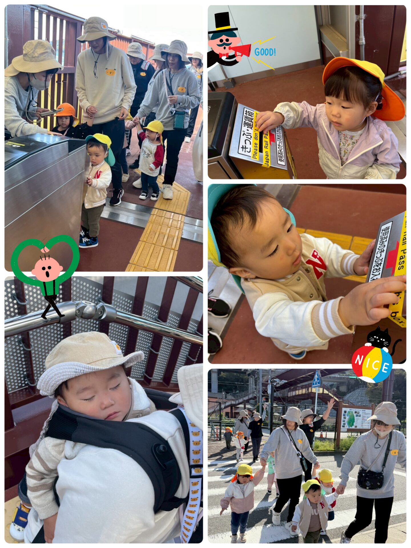 先生達が持っている切符をキラキラした目で見ていたね✨窓の外の景色をじーっと眺めたり、手すりをぎゅっと握ったり🤝楽しみだけど、ドキドキする気持ちも伝わってきました💞