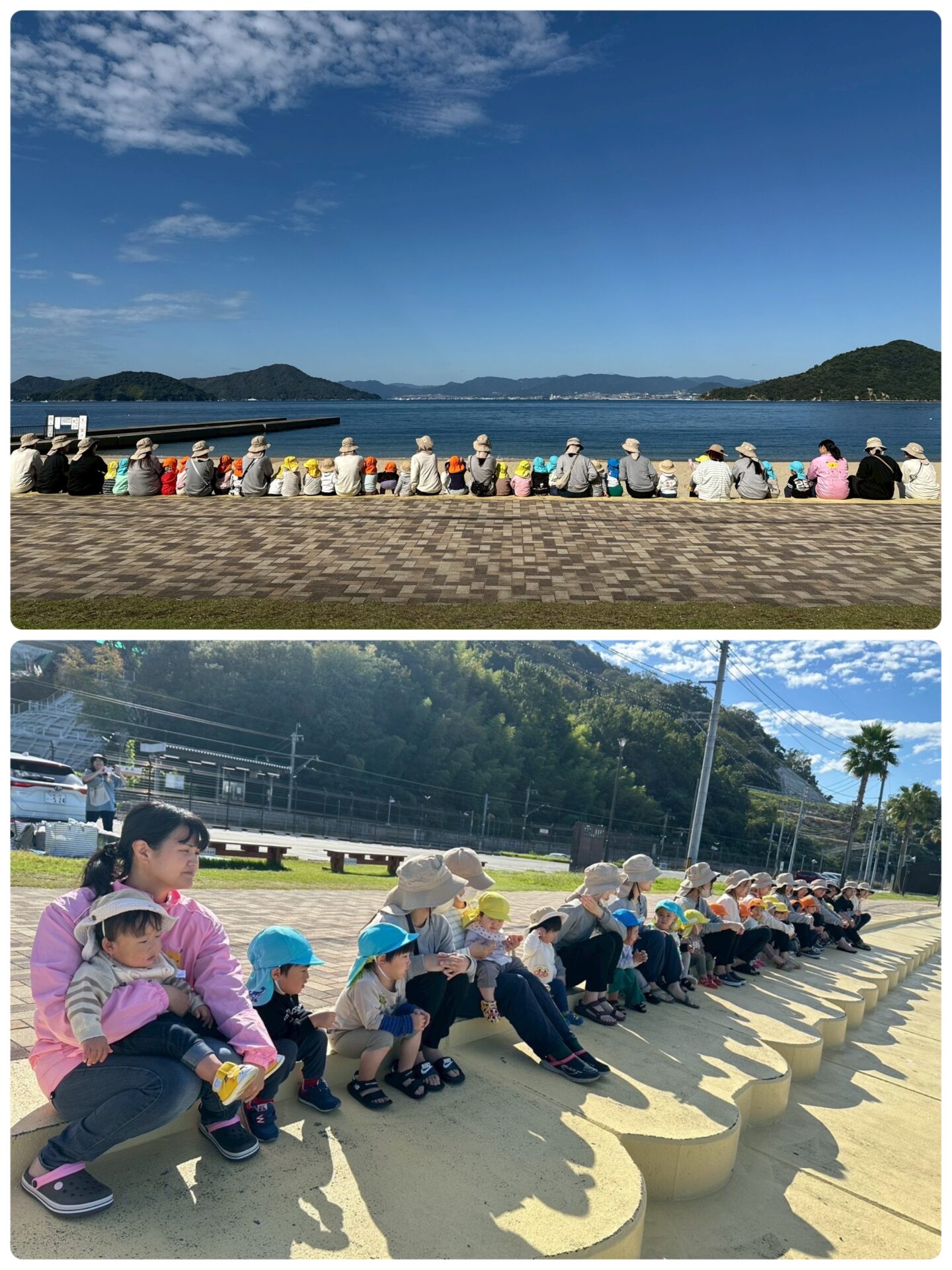 瀬野駅で第一園舎さん、第二園舎さん合流し、おはようございますのご挨拶と、他のお客さんも乗っているので静かに乗るお話を聞きました😄