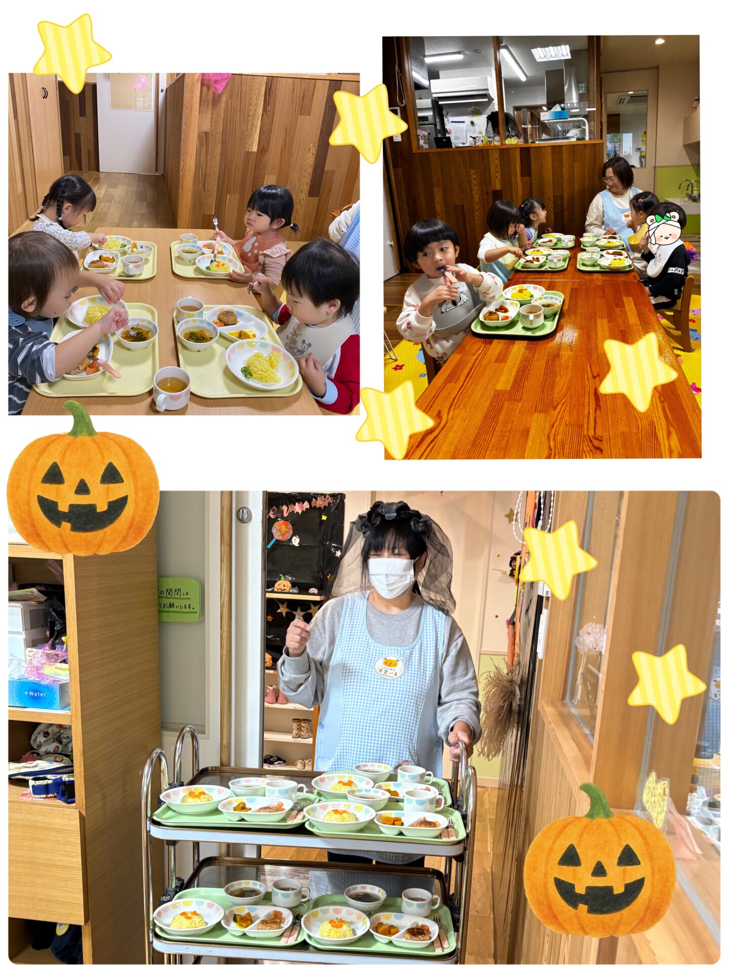 今日の給食は、なんと「カボチャオバケ🎃のごはん」でした。