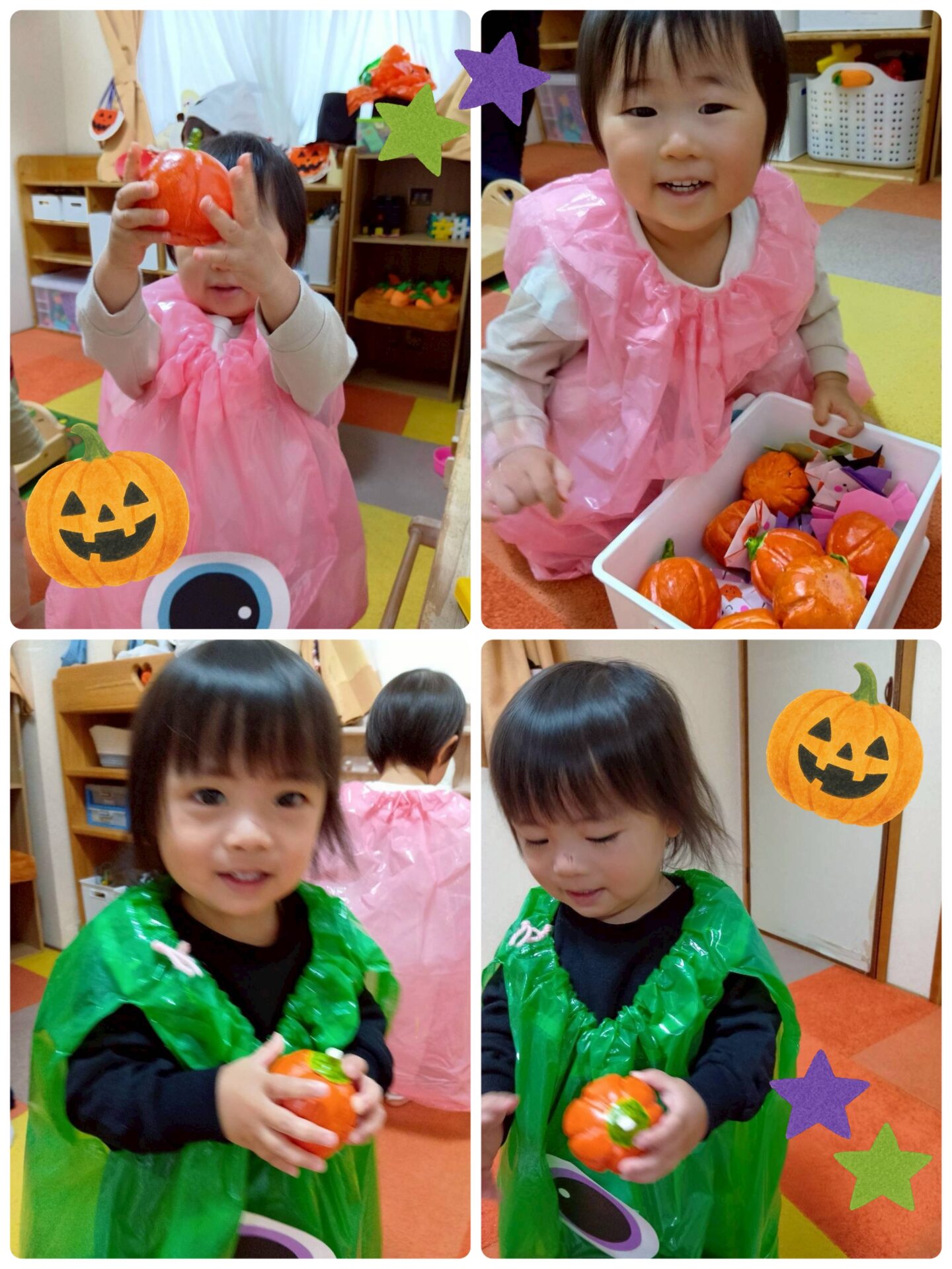 0歳児さんはぽてっとかわいいジャックオーランタンになりました🎃