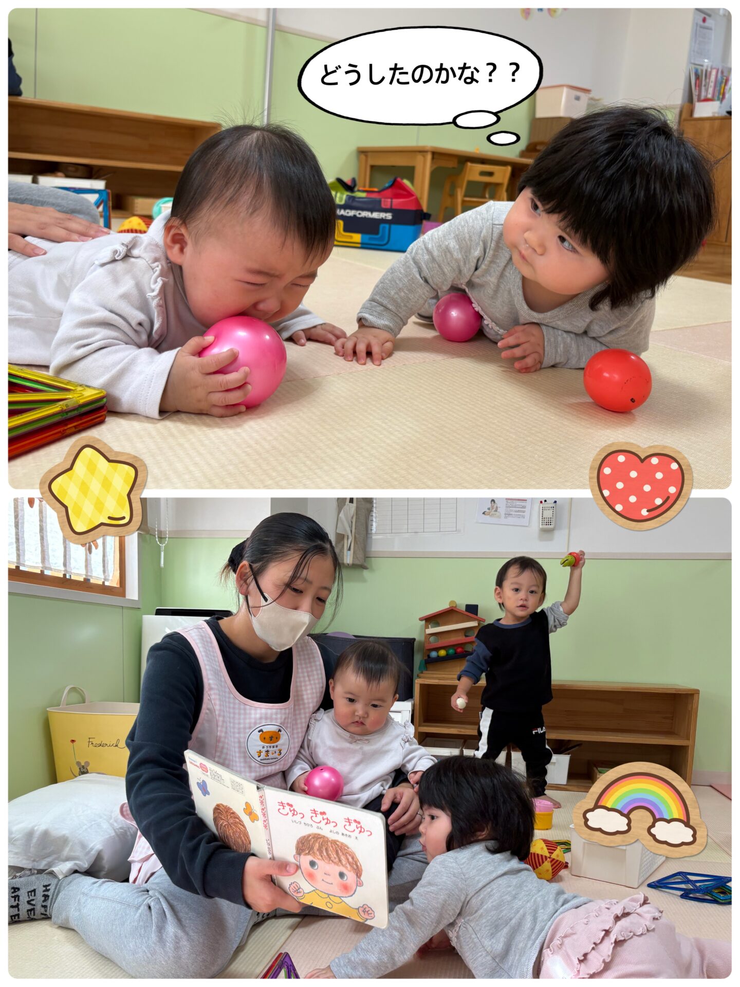 午前中は0歳さんお部屋で遊びました☺️だんだん保育園にも慣れてきて、にこにこ笑顔もたくさん見られるようになりました🌟
