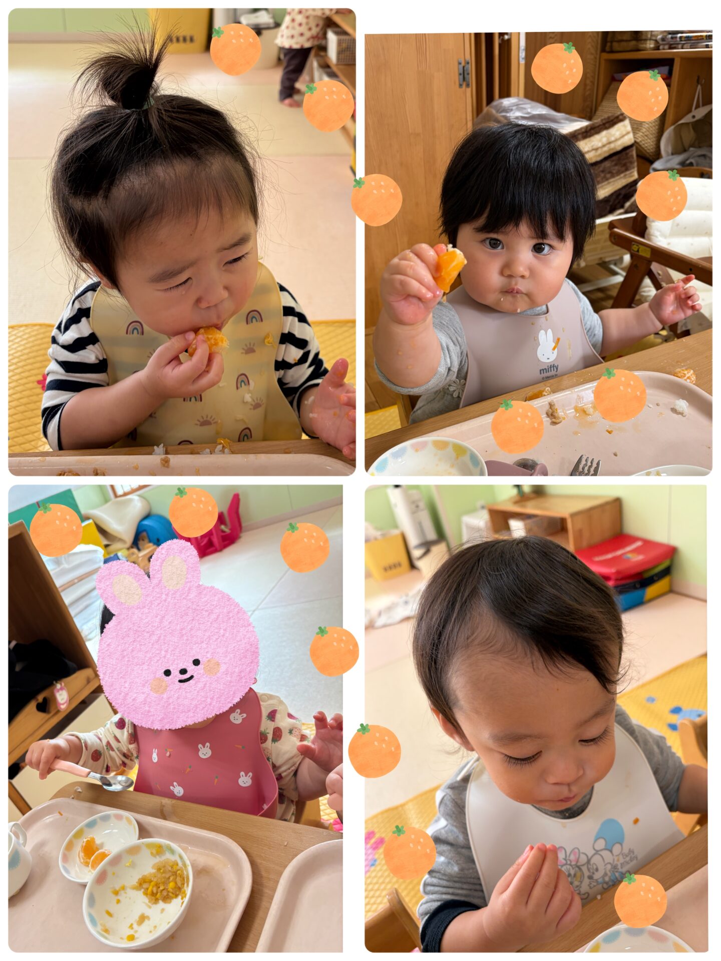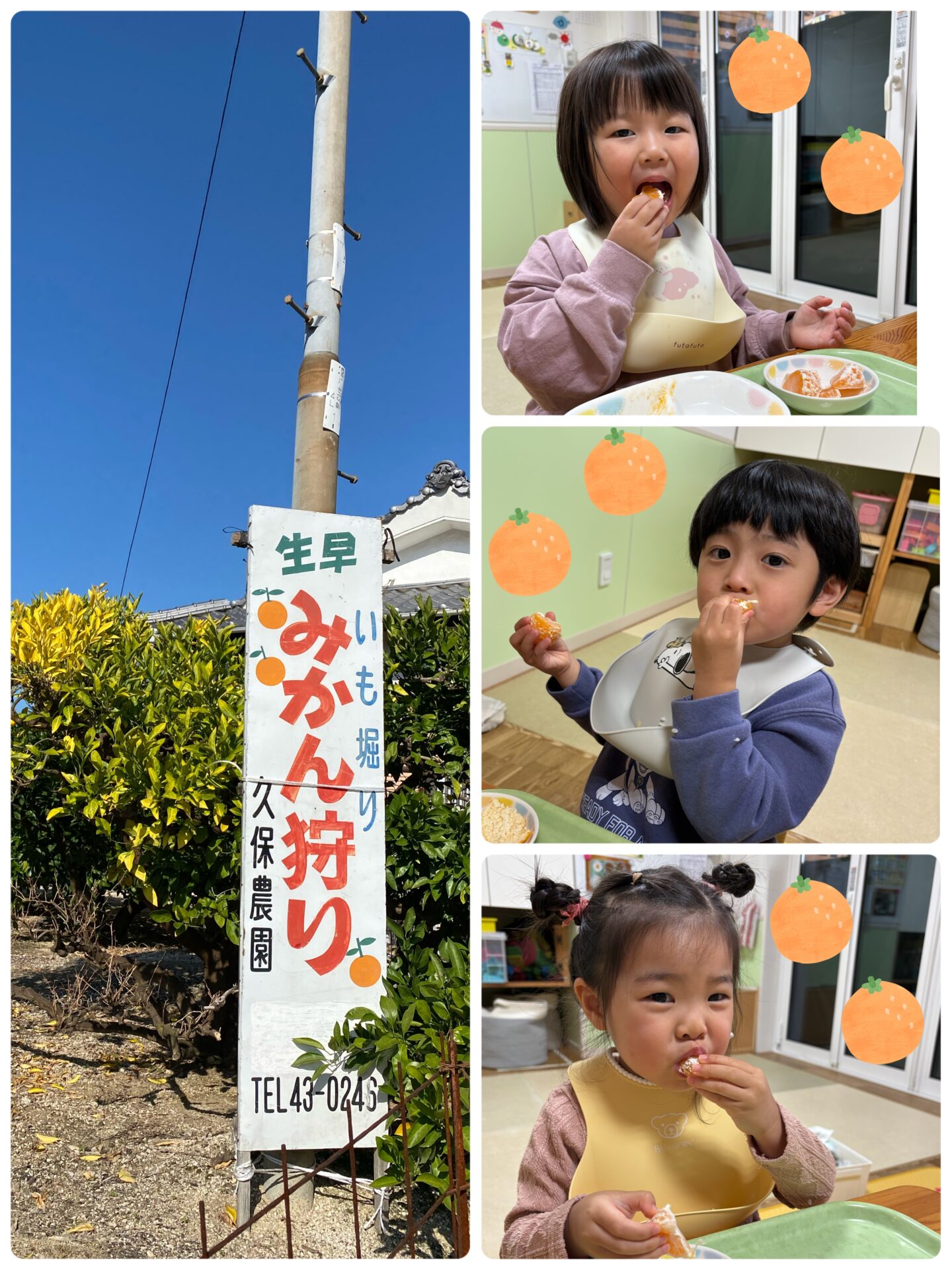 みかん狩りで取れたみかんを給食のデザートで食べたすまいるさん😋