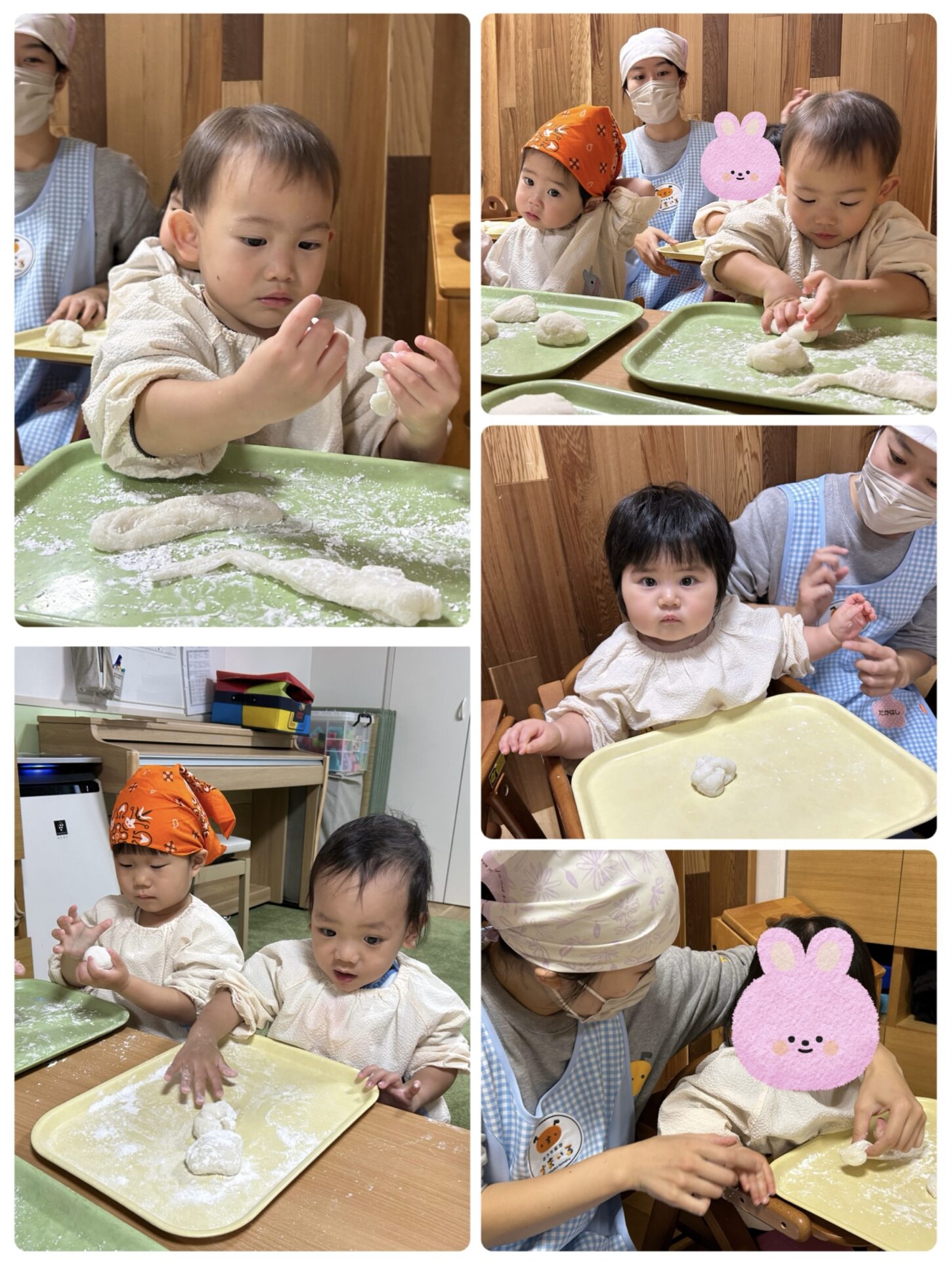 大きいさんはそーっと触って優しくコロコロ丸めたりぺったんこしたりと上手でした👏🏻