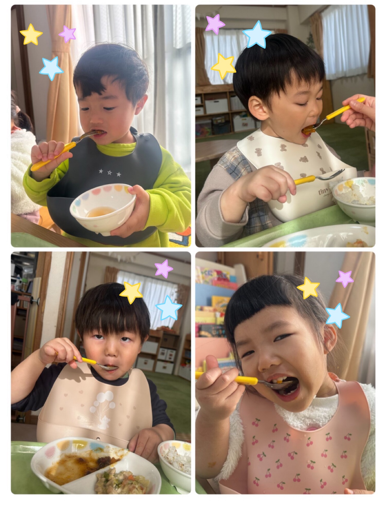 今日のお給食には「なんきん(カボチャ)」「にんじん」などの食材がたっぷりと使われていました😋カボチャと一緒にいとこ煮にされたあずきには、その赤い色から厄除けの意味もあるそうです。