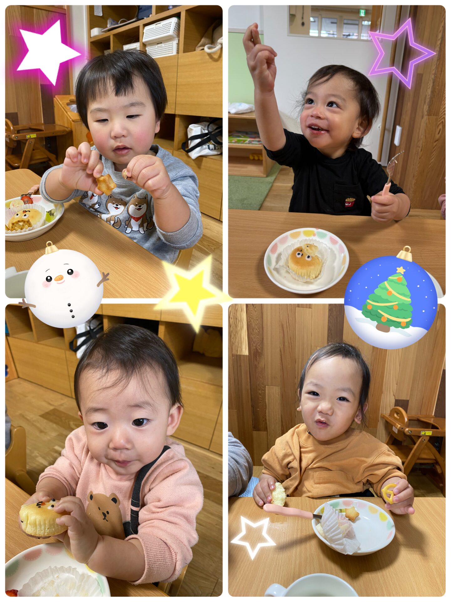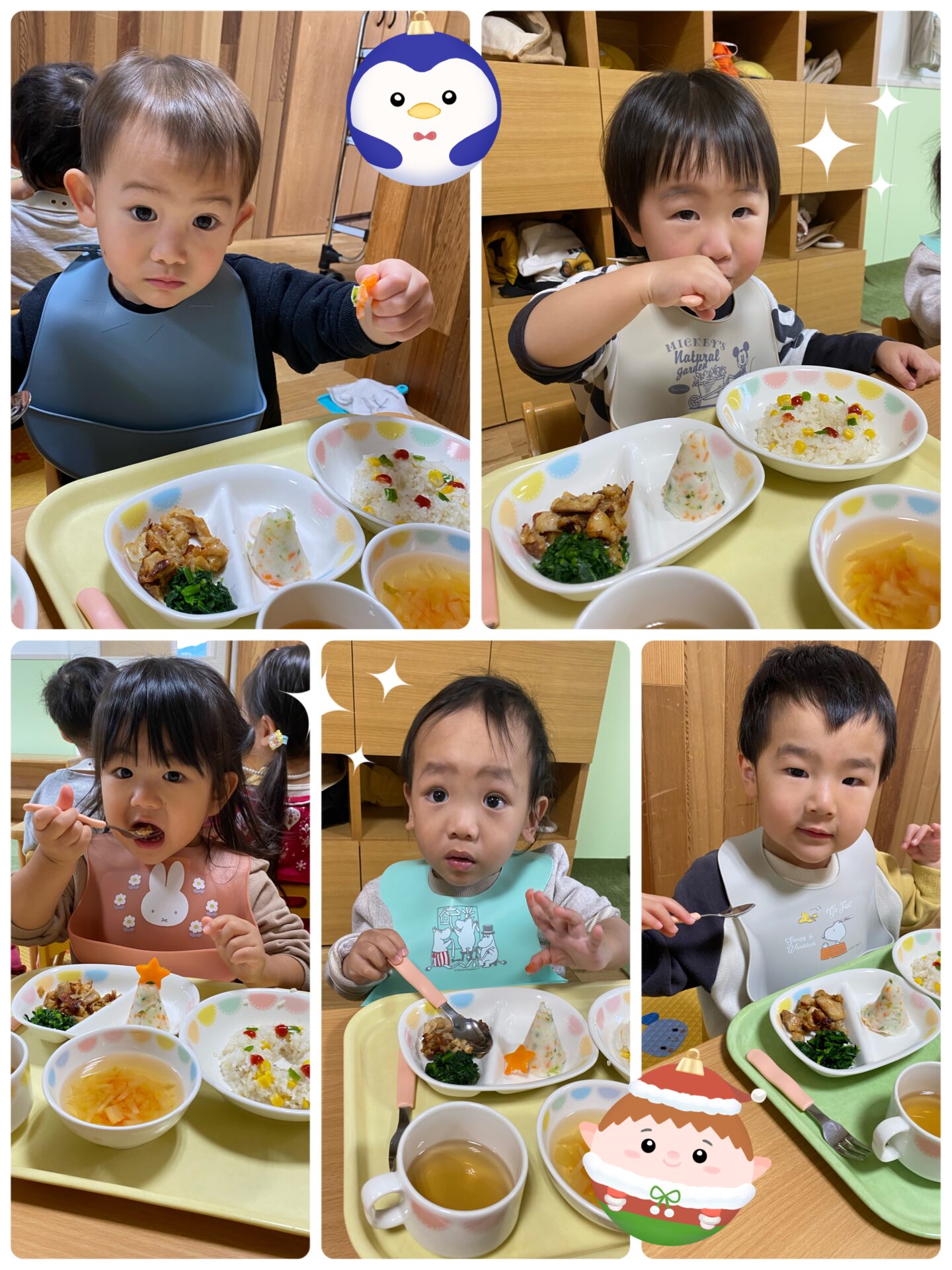 ツリーに乗っているニンジンのお星様を見て、Iくんは「キラキラ✨」と言って手をキラキラさせていました🌟