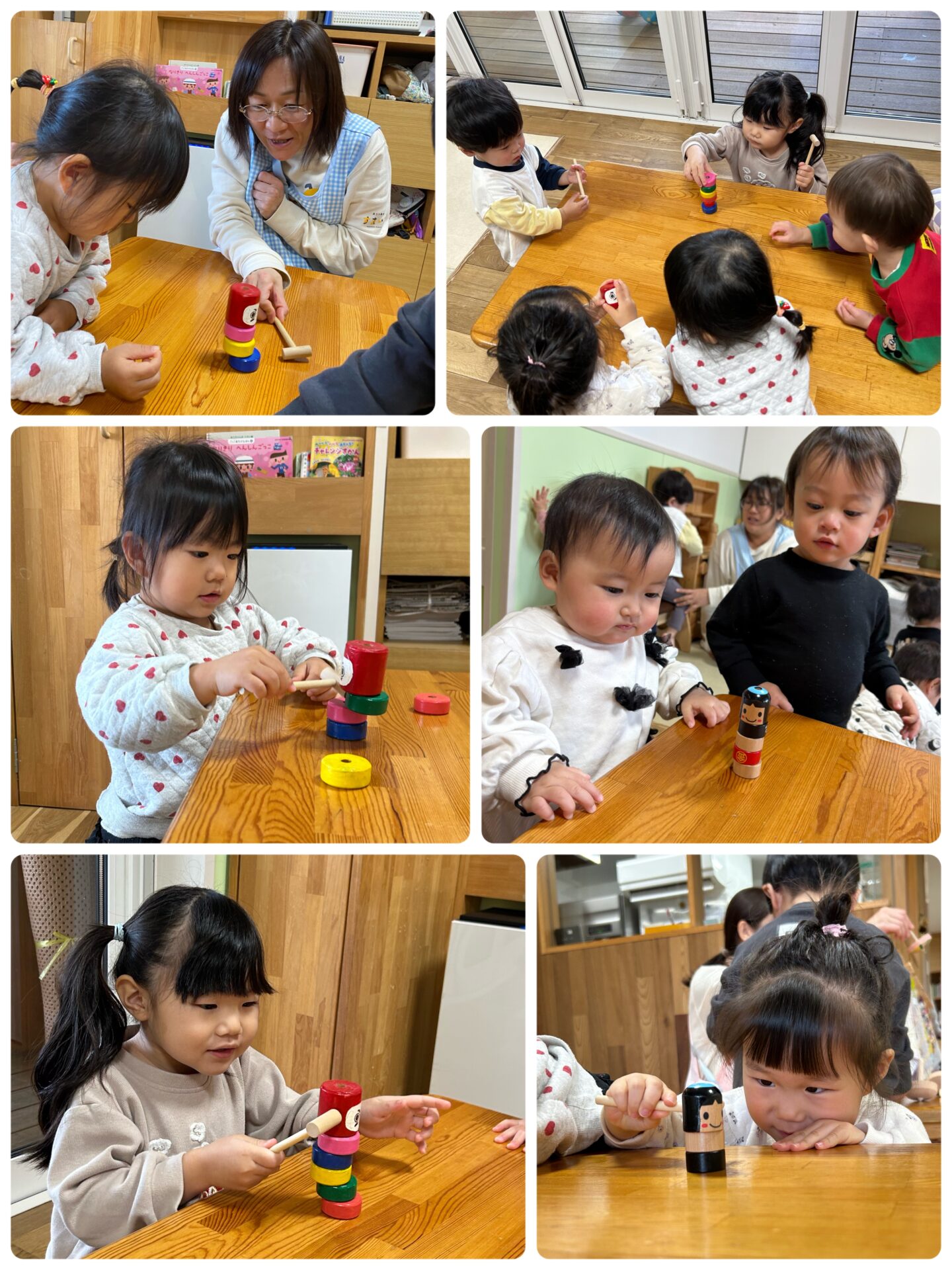 だるまおとしでは難しくても積み重ねて何度も挑戦していました。
