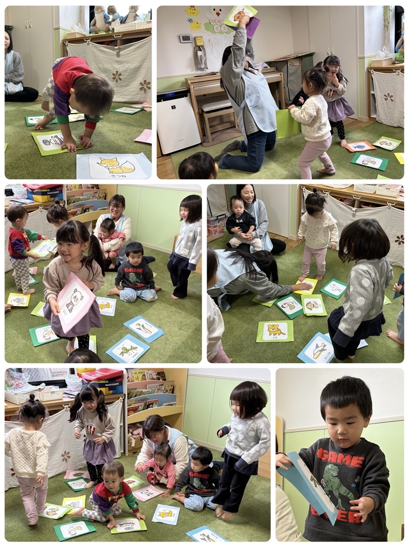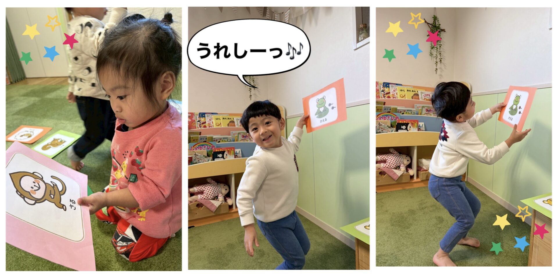 絵カルタが取れるととても嬉しそうな笑顔を見せ、ぴょんぴょん跳ねて嬉しい気持ちが溢れていましたよ︎💕︎
