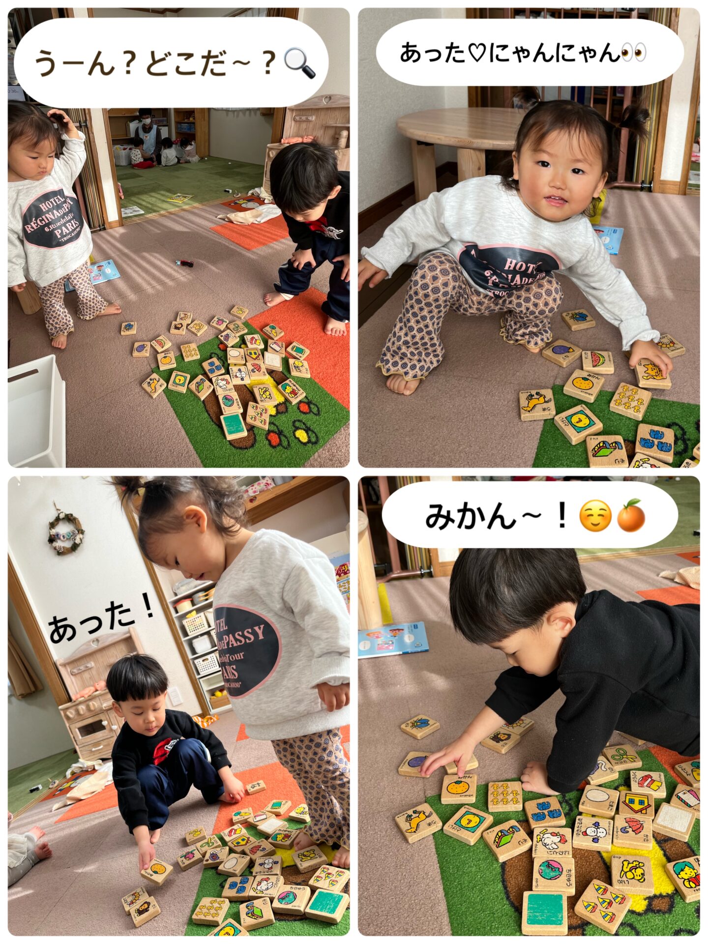 今日は、Hくんをお手本に、Nちゃんがカルタにチャレンジ👀