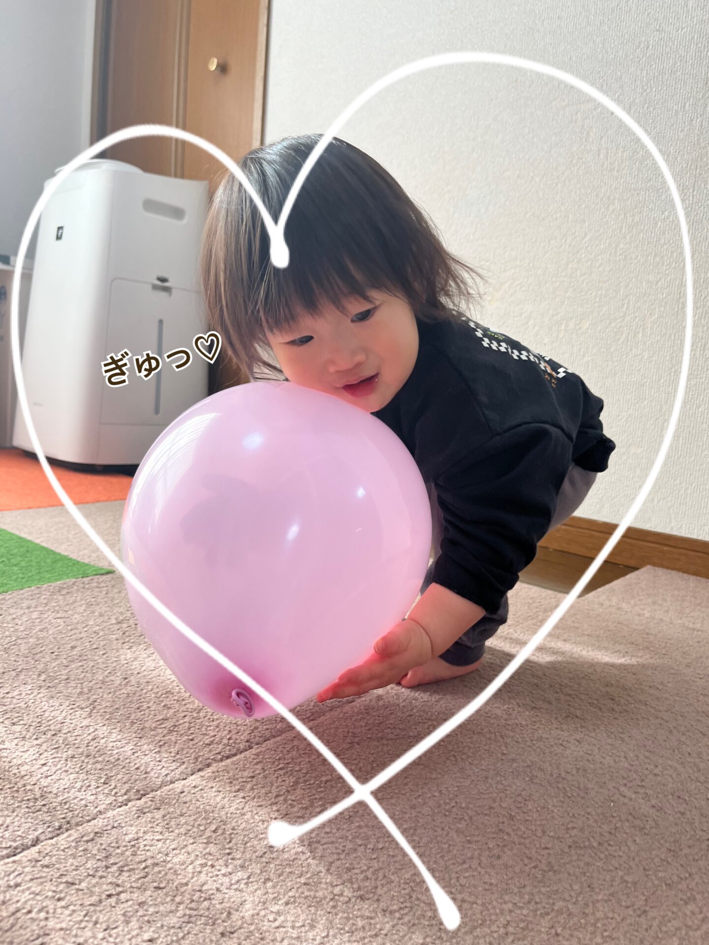 「ぎゅ〜」と言いながら風船を大切そうにだきしめるRくん💕