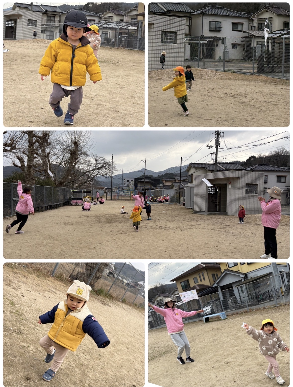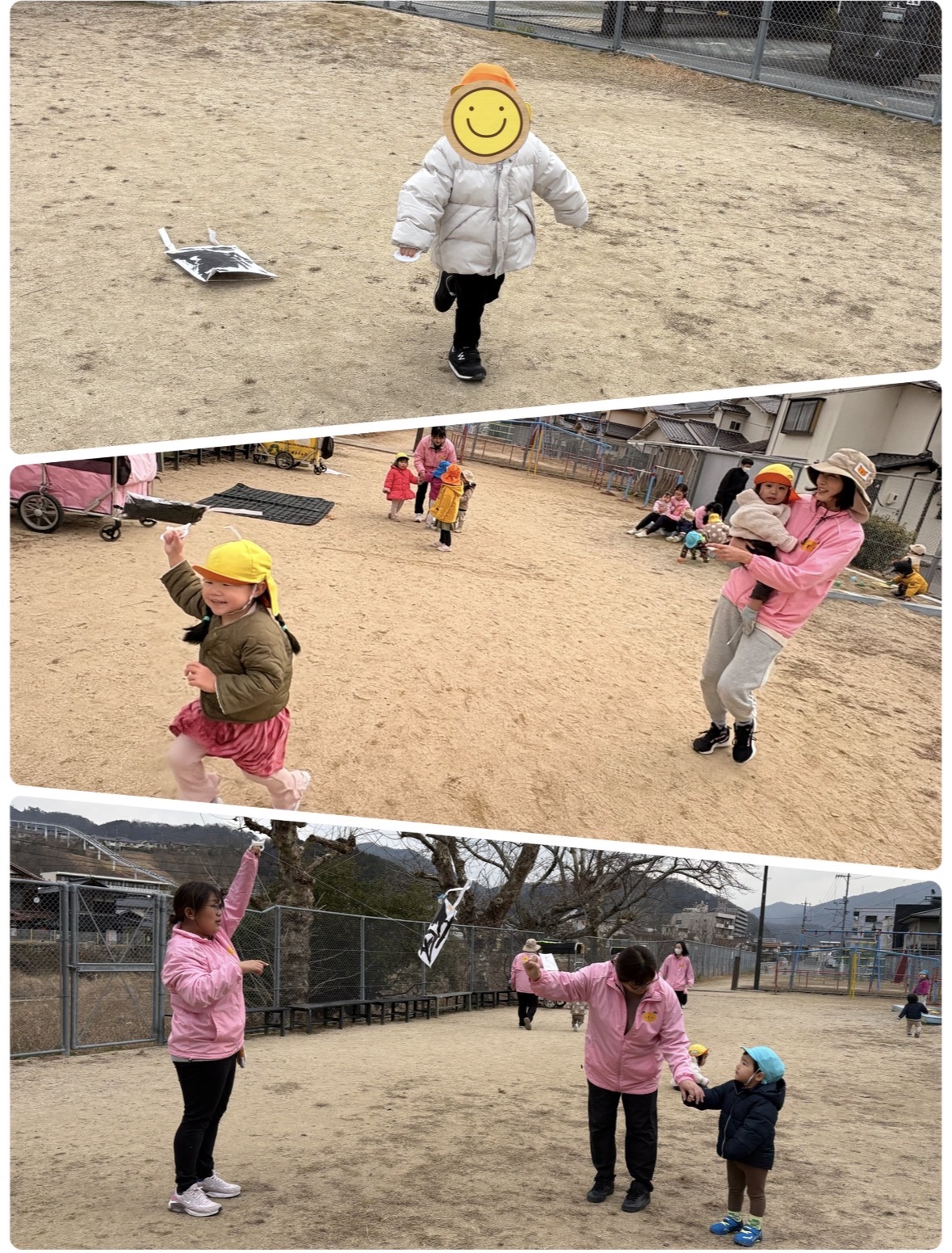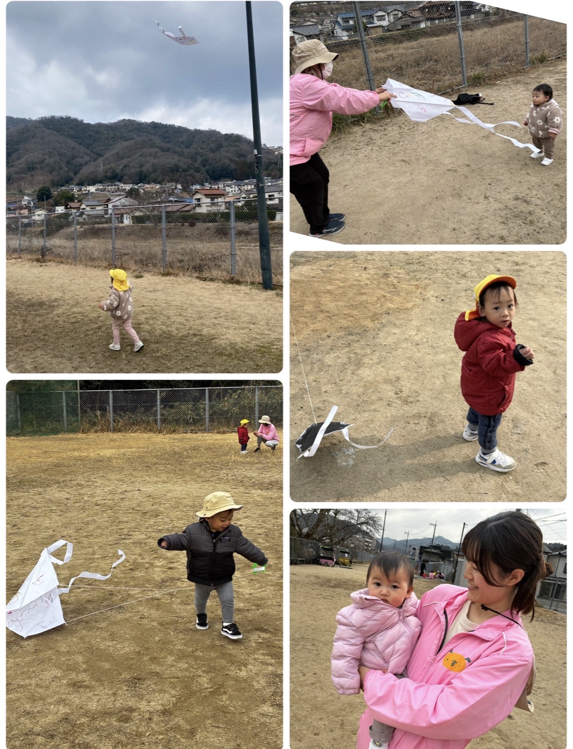 Mちゃん、Tちゃん、風にのってとっても高く上がっていたね🪁Iちゃんは、難しい💦と言いながらも、走るとだんだん凧が上がっていき、笑顔に☺️やったーー!とどんどんまた走っていました💨