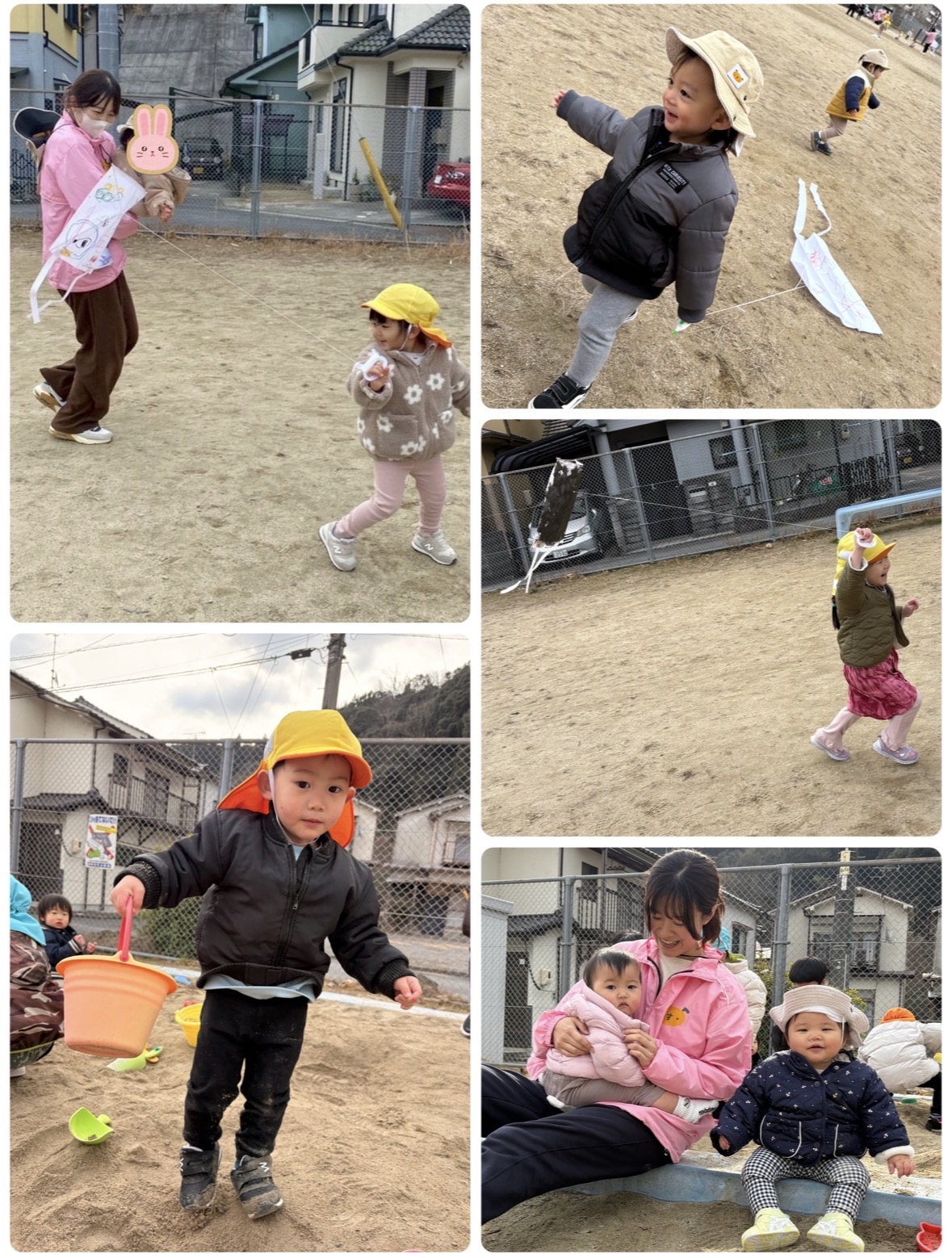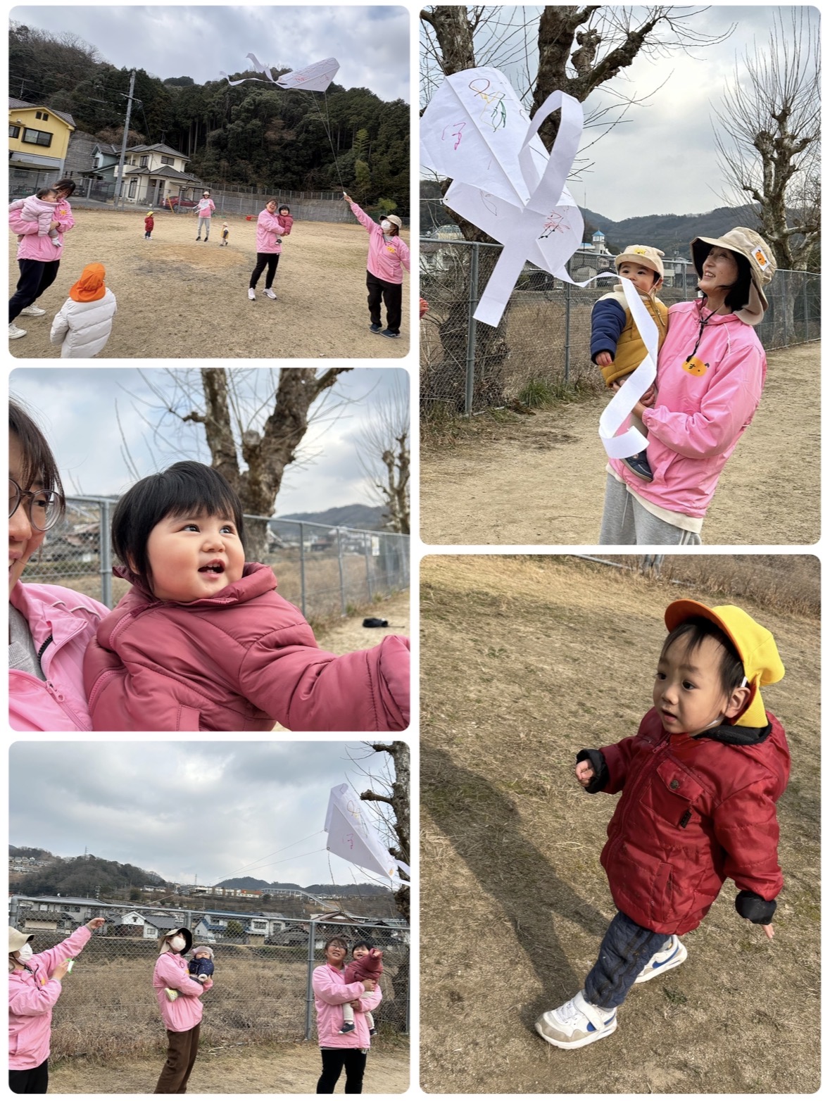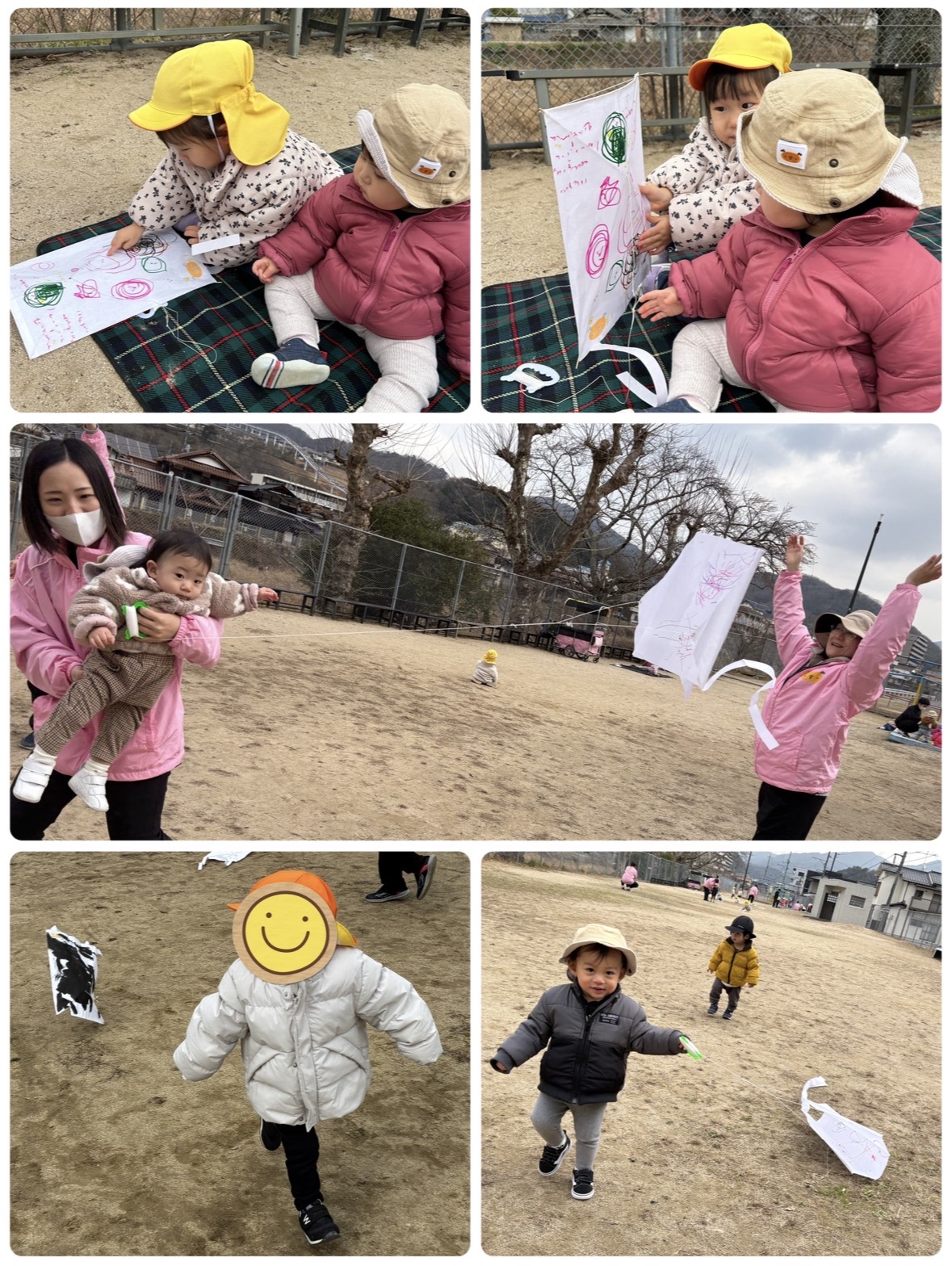 0歳さん達も自分で持ってみたり、保育者やお友だちが上げている凧を追いかけたりして楽しみましたよ🌼