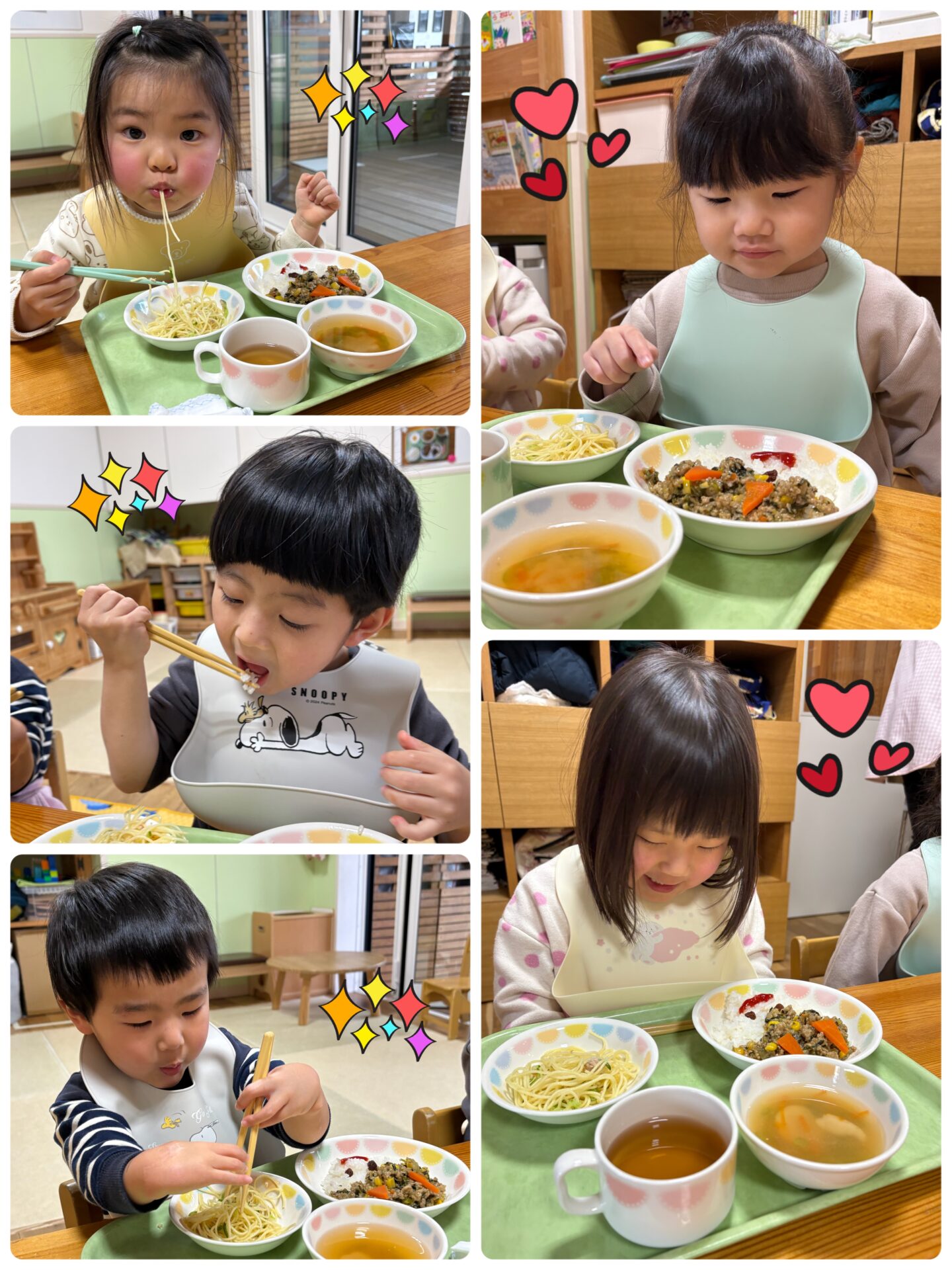 大きいさん、お箸頑張っています🥢とってもおいしいね🧡