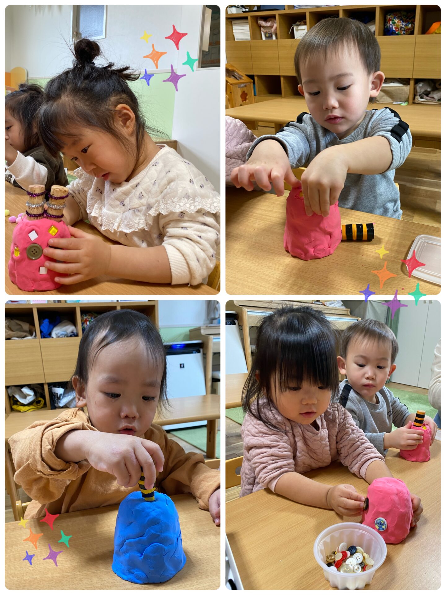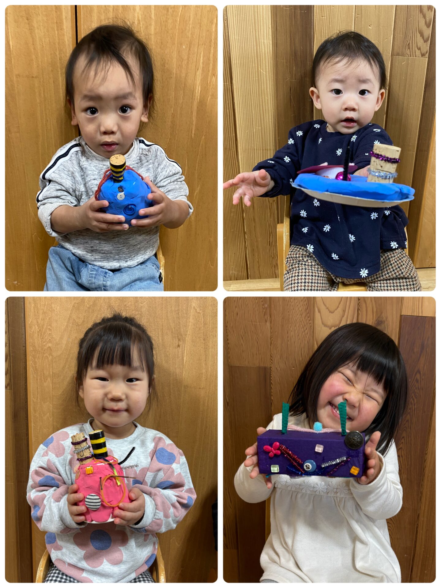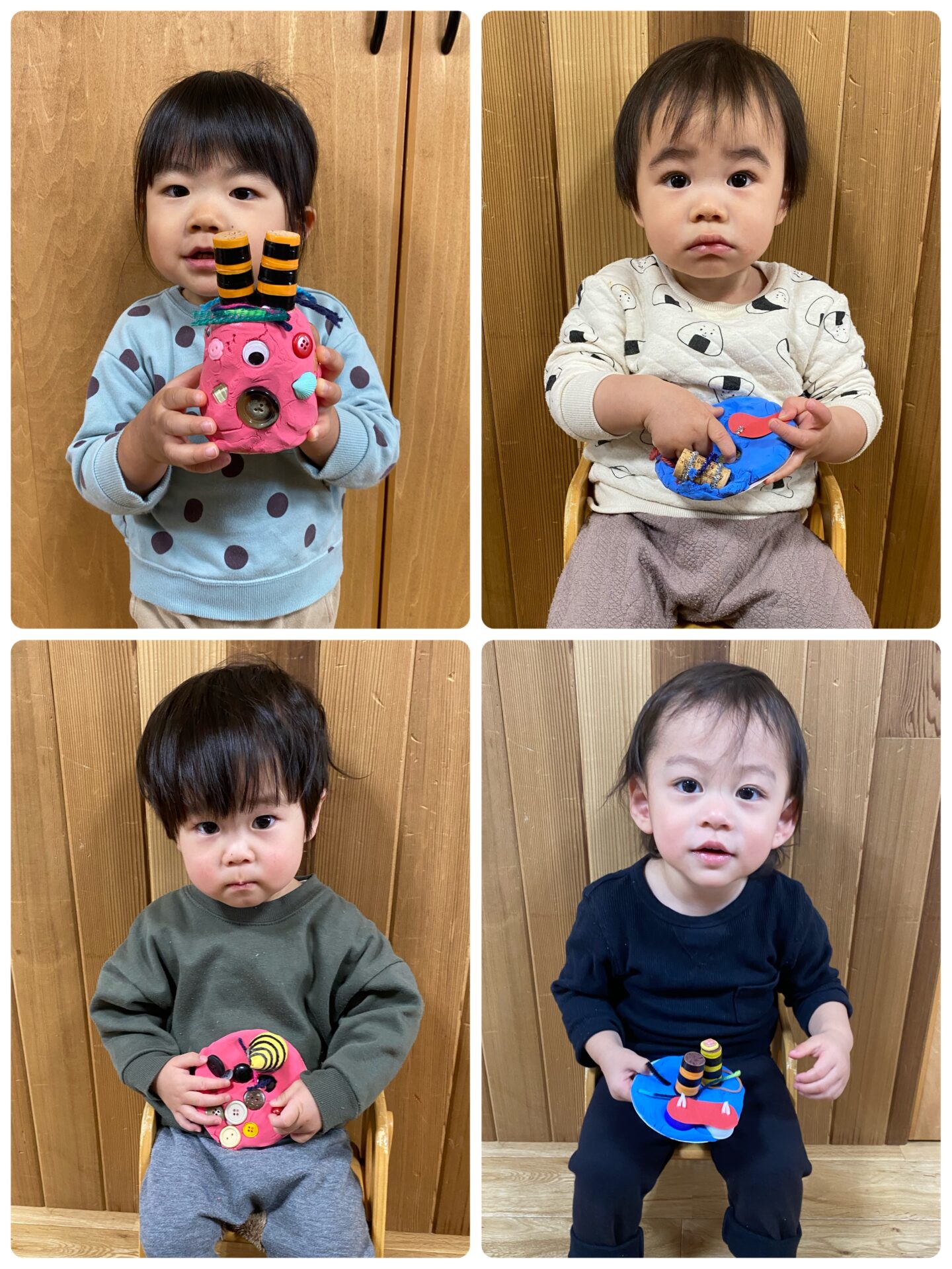 0歳さんは、紙粘土、パーツの感触を楽しみながら制作していきましたよ😀