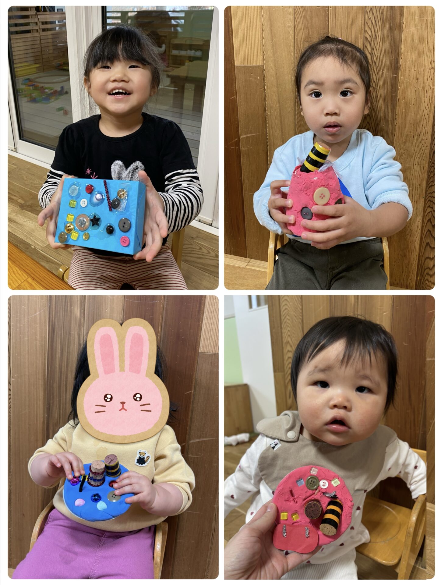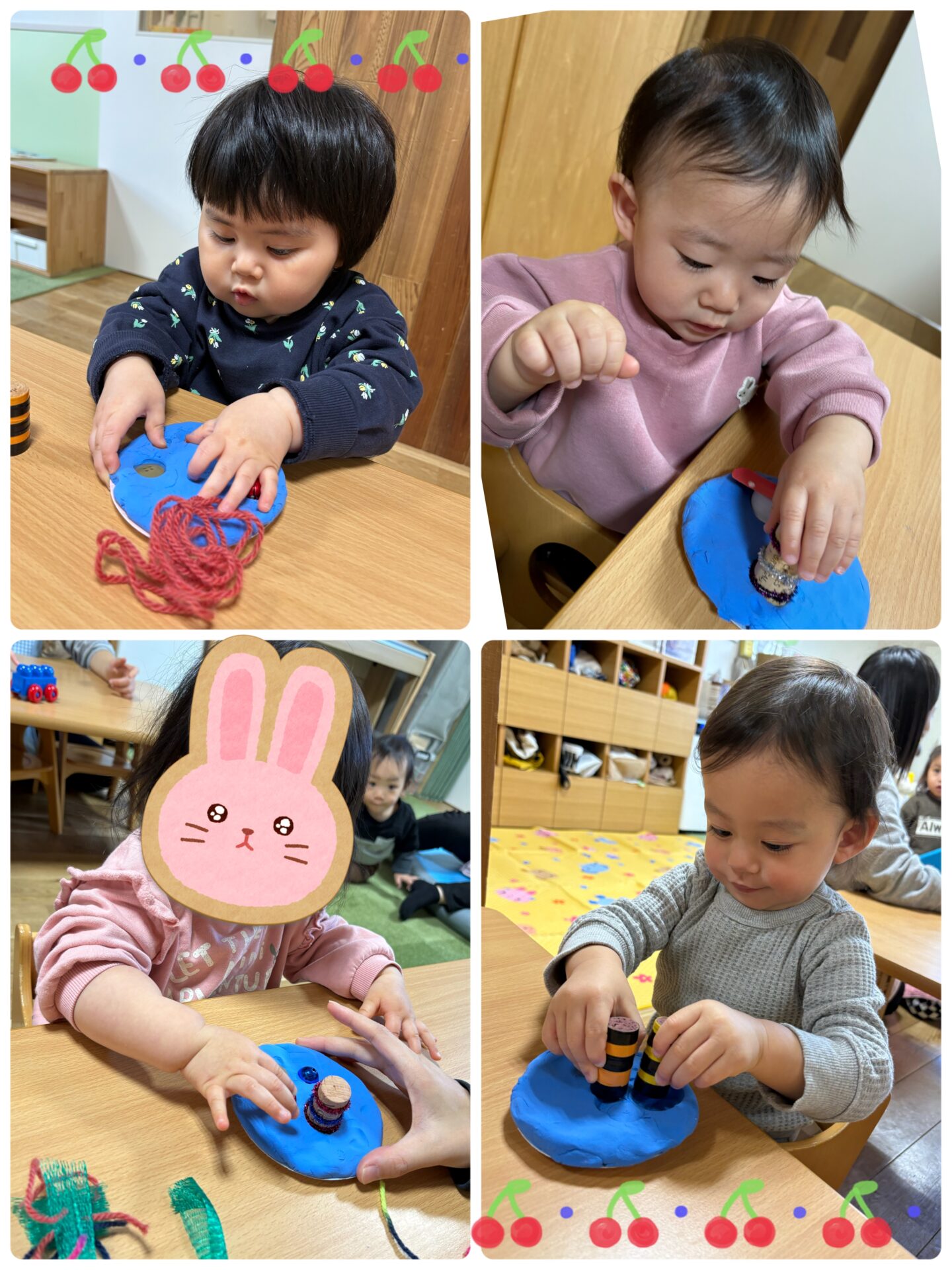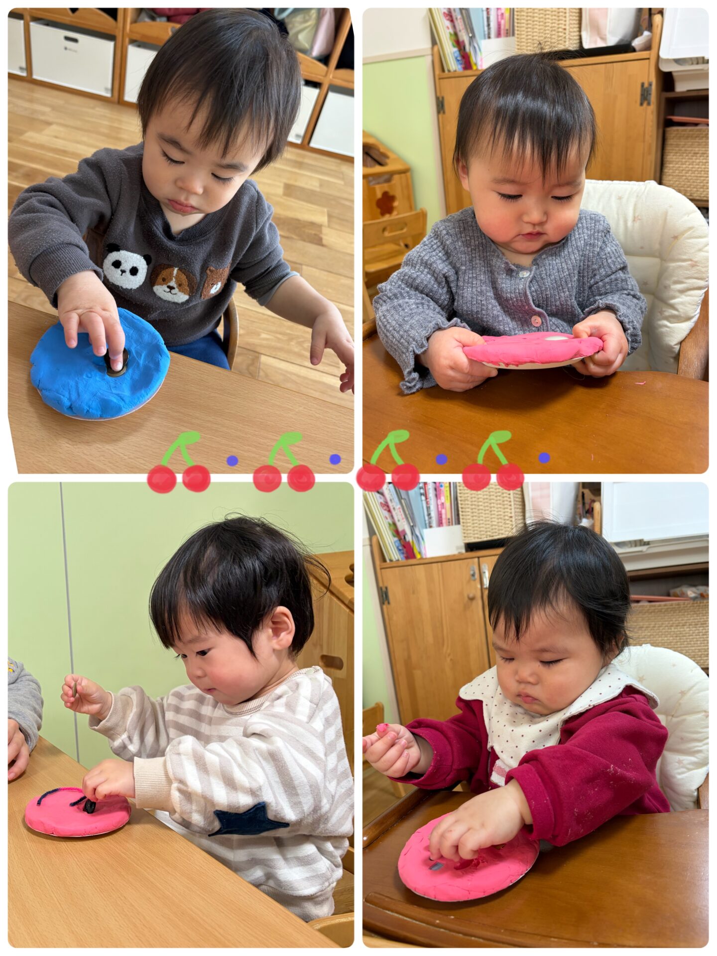 0歳さんは、紙粘土、パーツの感触を楽しみながら制作していきましたよ😀