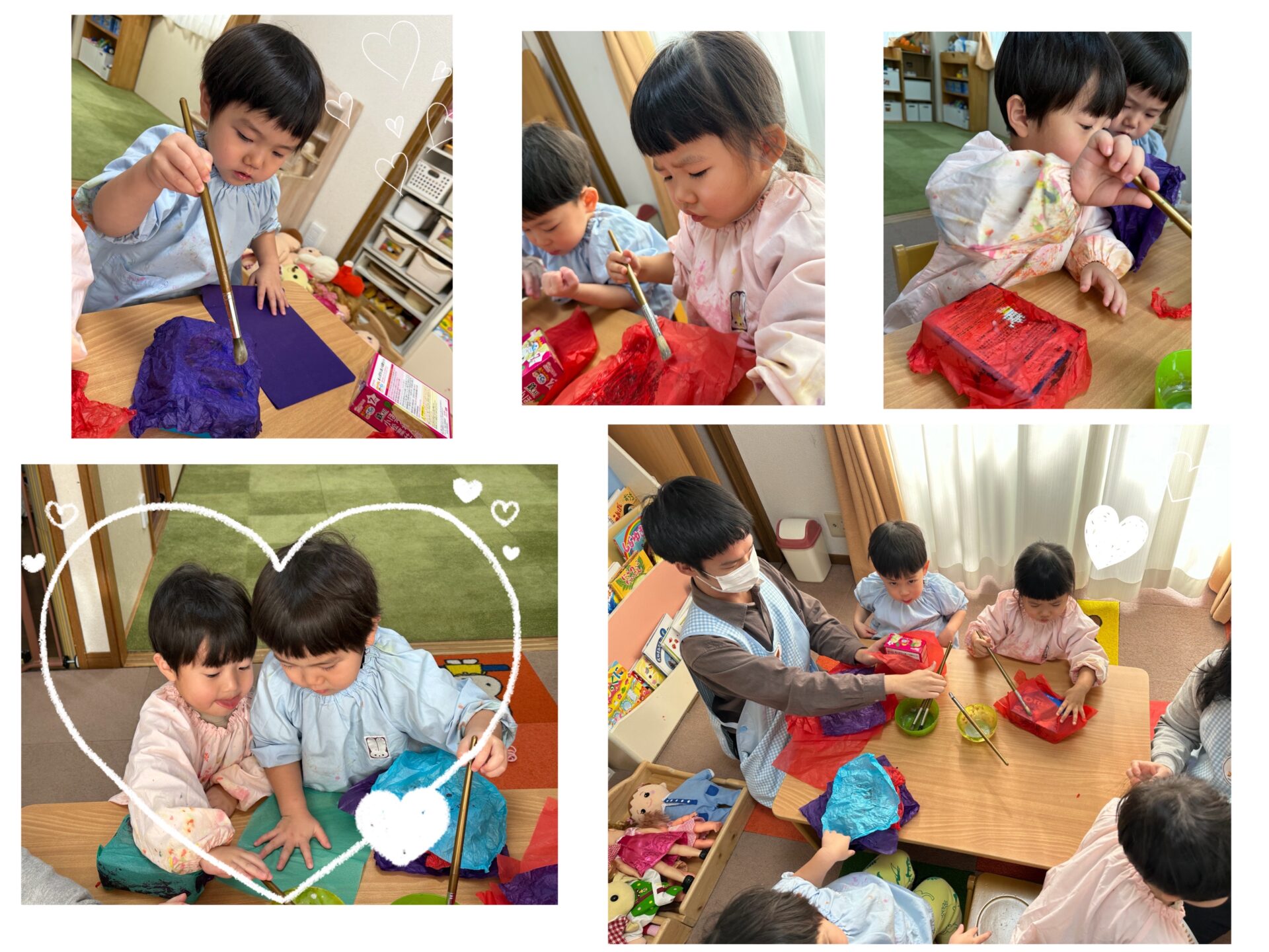 お花紙をペタペタと貼りました😊