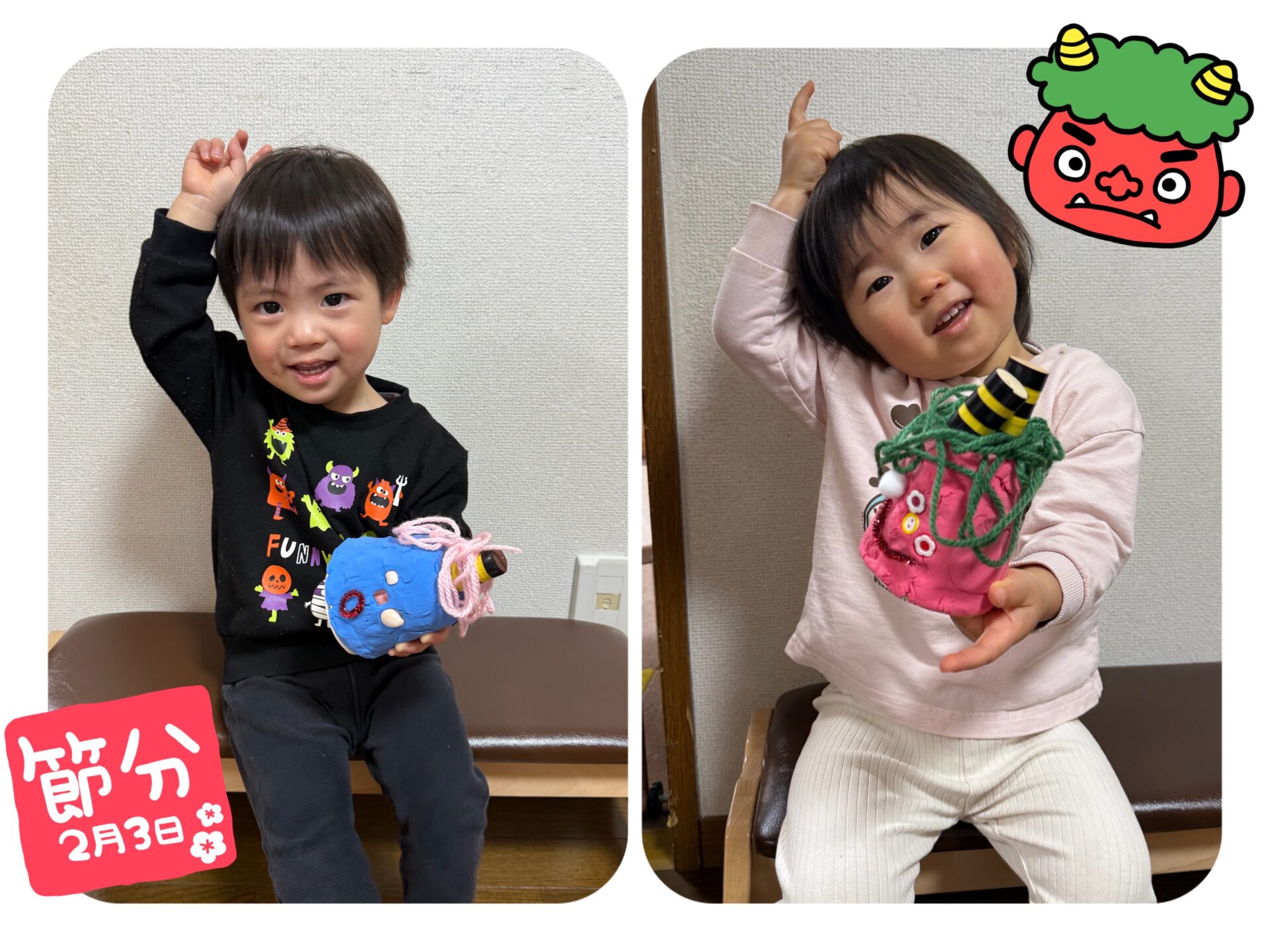 と、出来上がってからも飾った鬼さんを見てたくさんお話ししました☺️