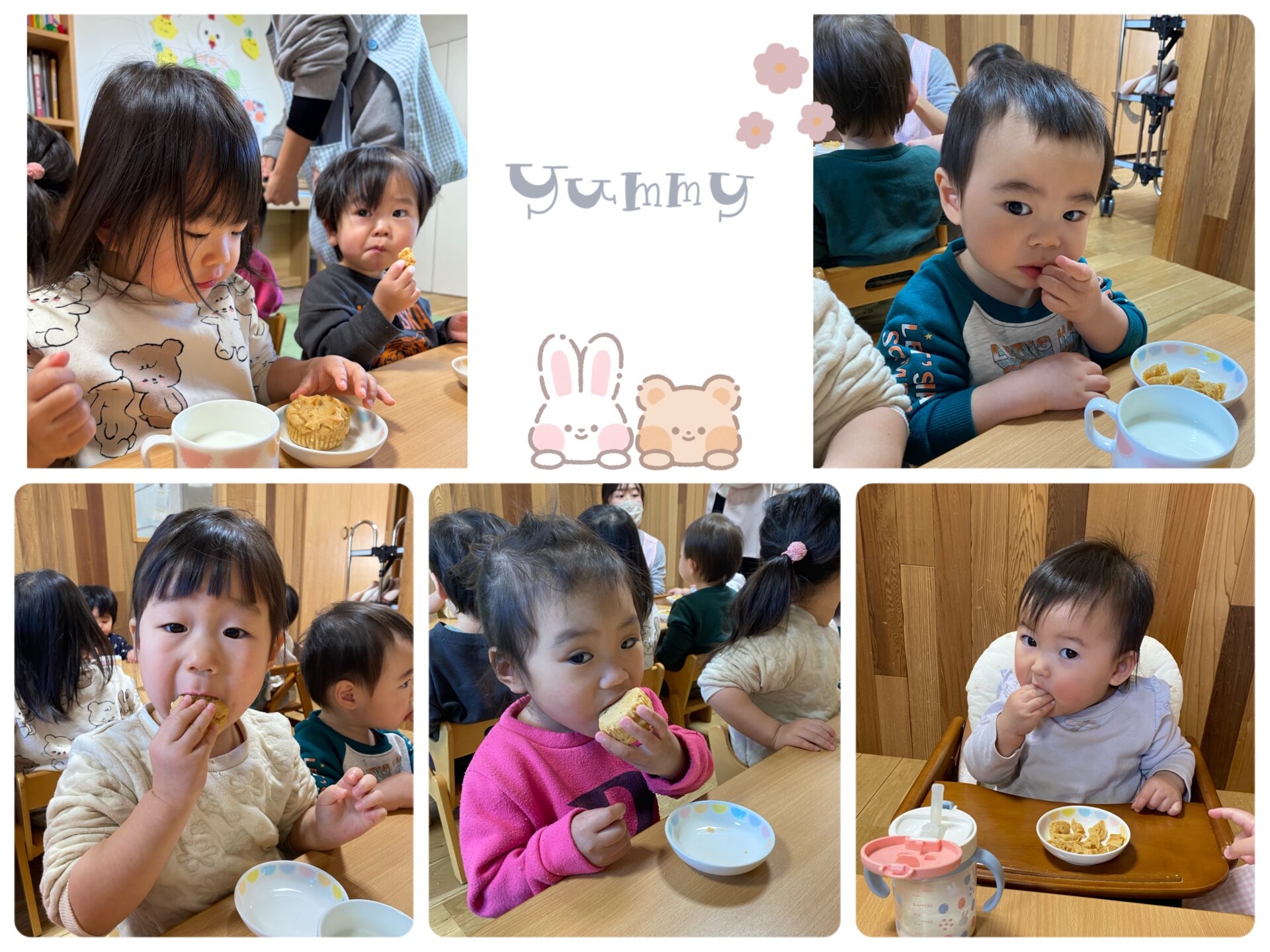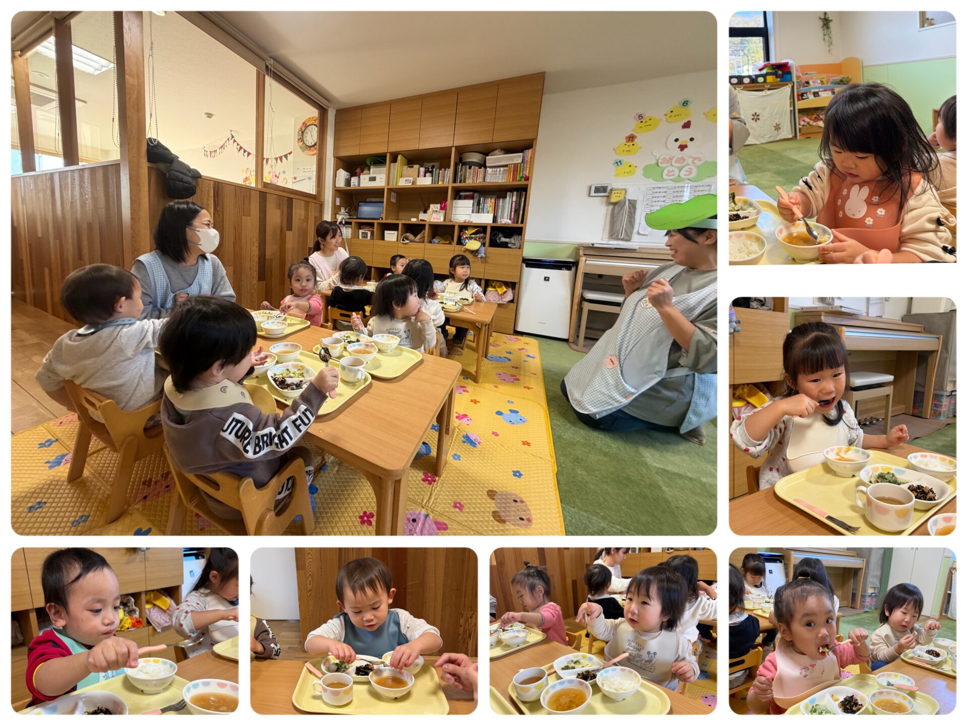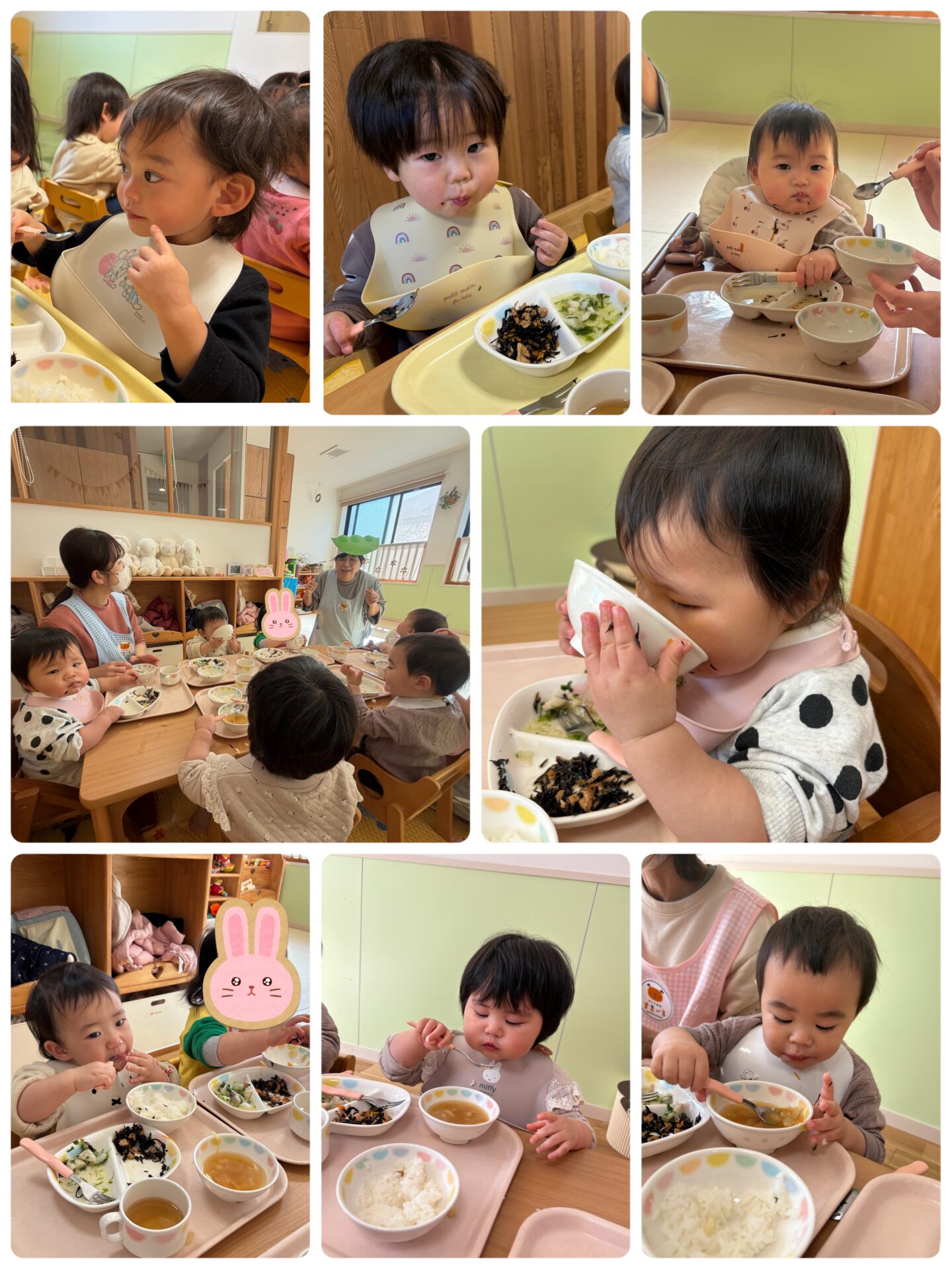 お味噌汁に入っているもやしを食べてみると「シャキシャキ言ってる😆」と美味しくお給食をパクパク頂きました🩷