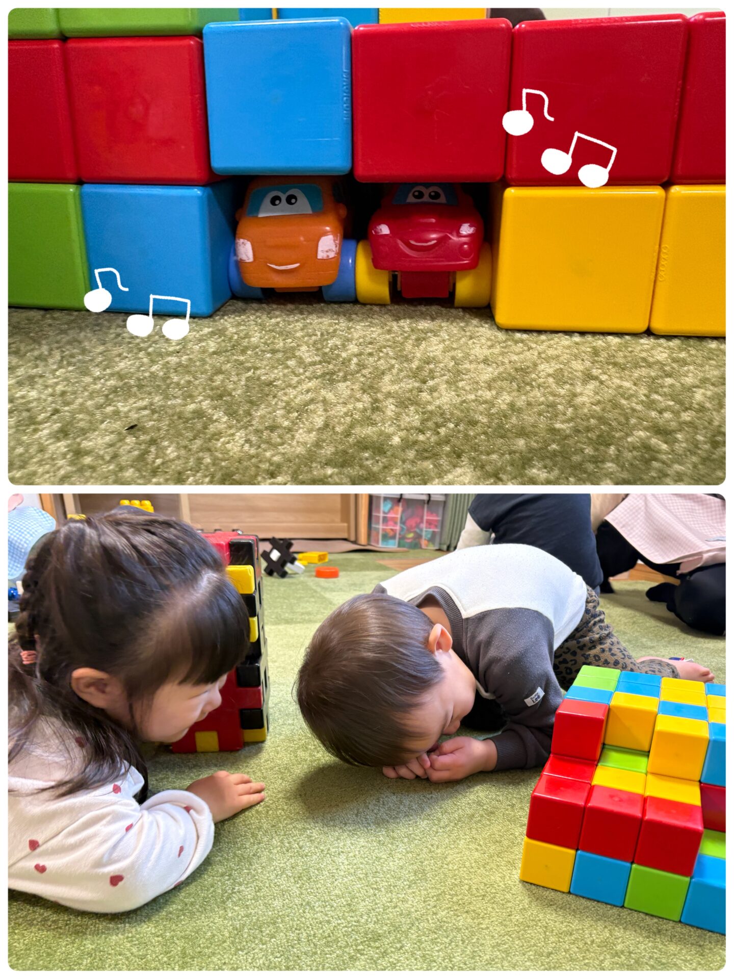 先ほどまで持っていた車がないな〜と見ていると「みて🤭」と、ここ!ここ!と教えてくれました🚗