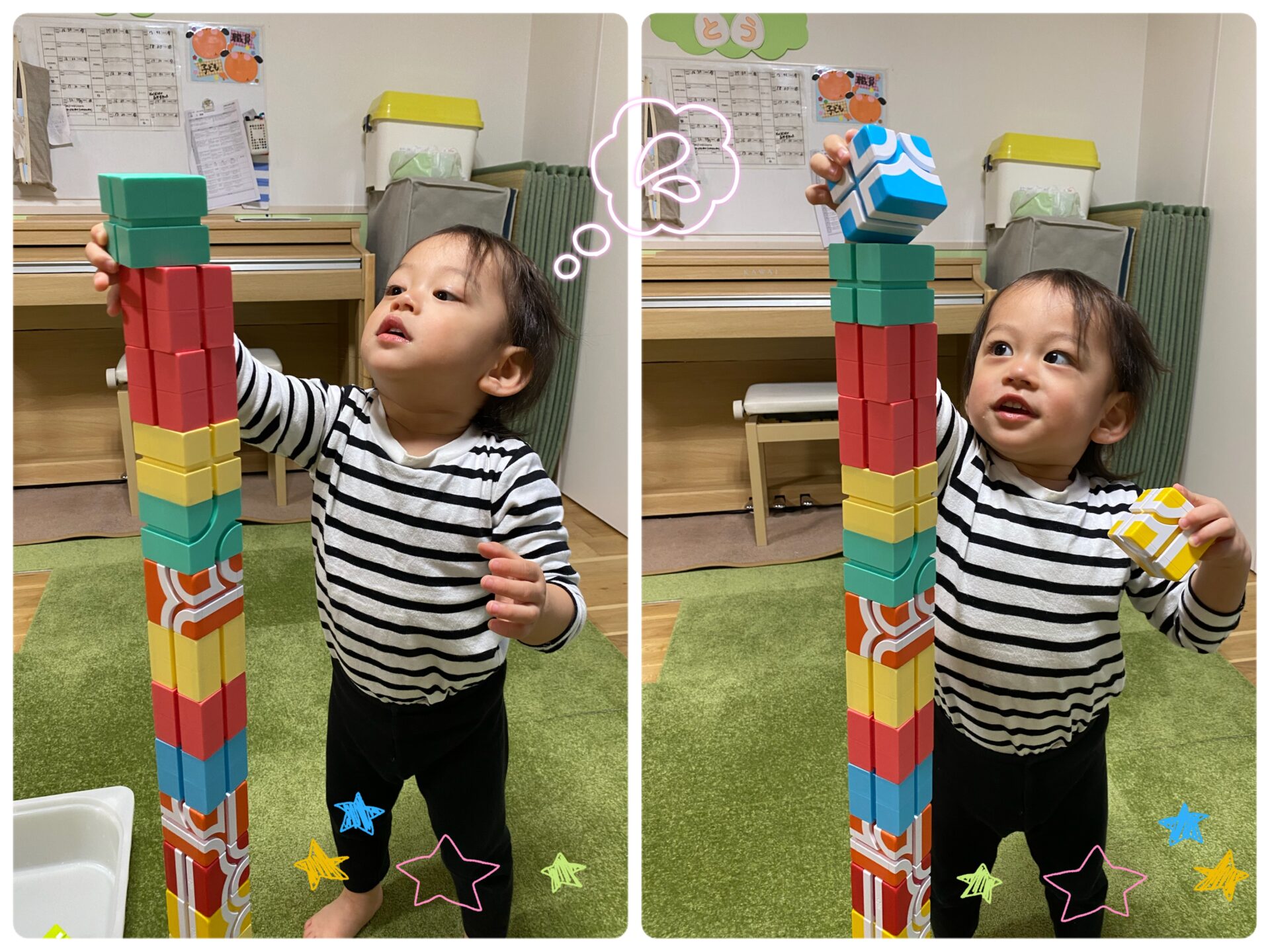 「見て~」と高く積み重ねているところを見せてくれました👀✨