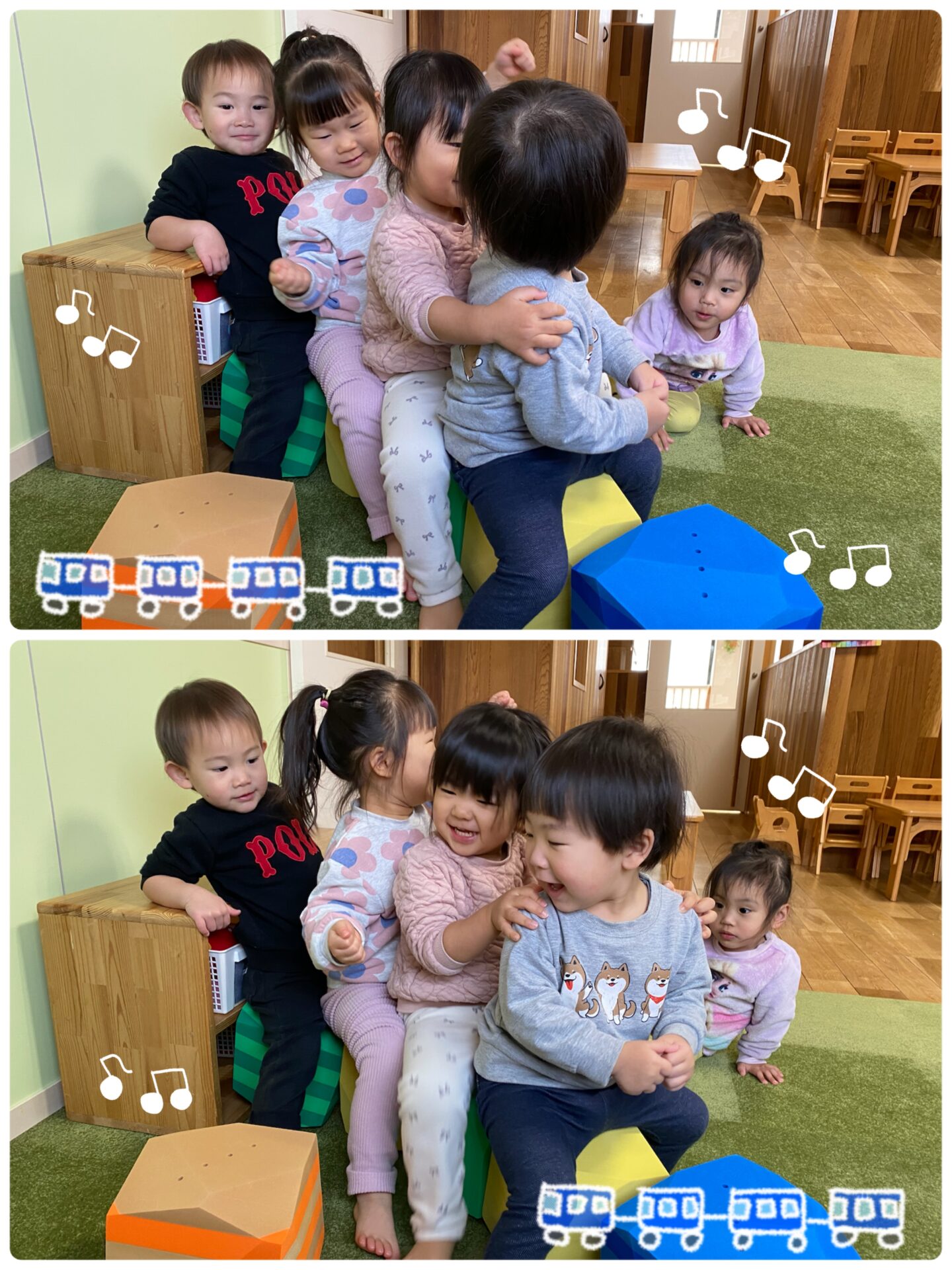 「来てー🎶」と声をかけてお友だちとバスごっこ楽しみました☀️