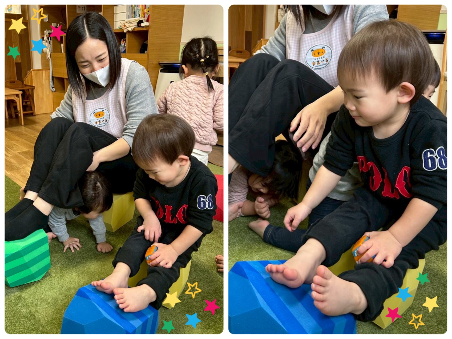 ” もう1回 ” と保育者の手を持ち自ら何度も挑戦していましたよ😉