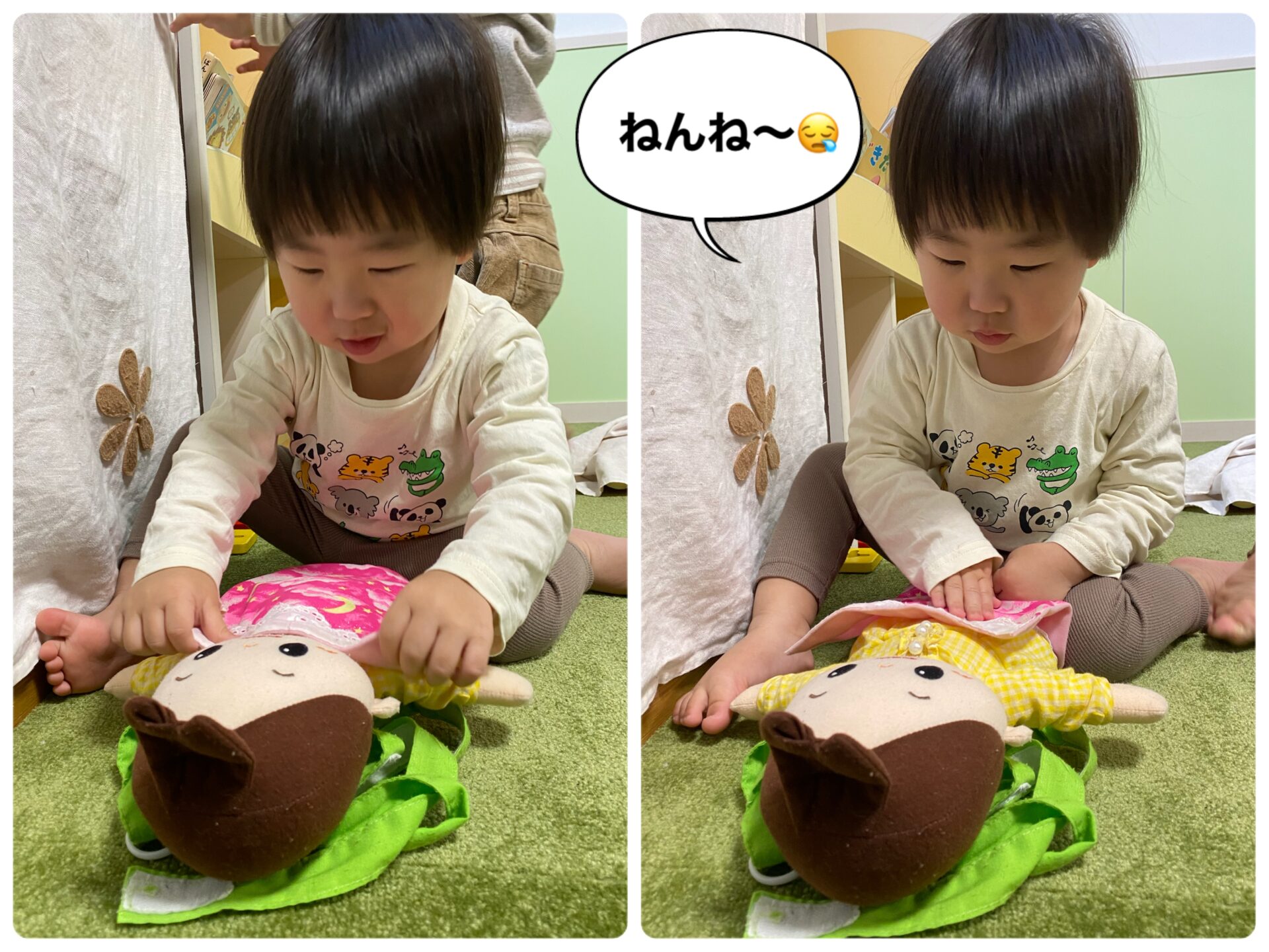 「あかちゃんっ🎶」とあかちゃんのぬいぐるみを持ってきて「ねんねするよ💭」とお話してくれたMくん👦🏻