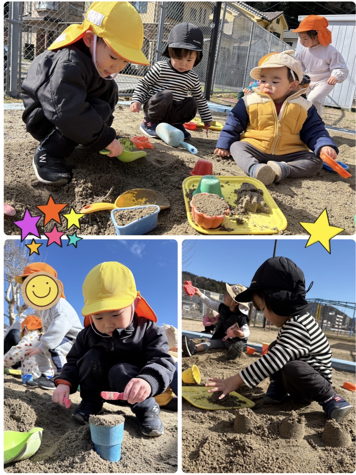 昨日は雨が降ったので、砂が湿っていました✨触ると冷たかったね😆💦
