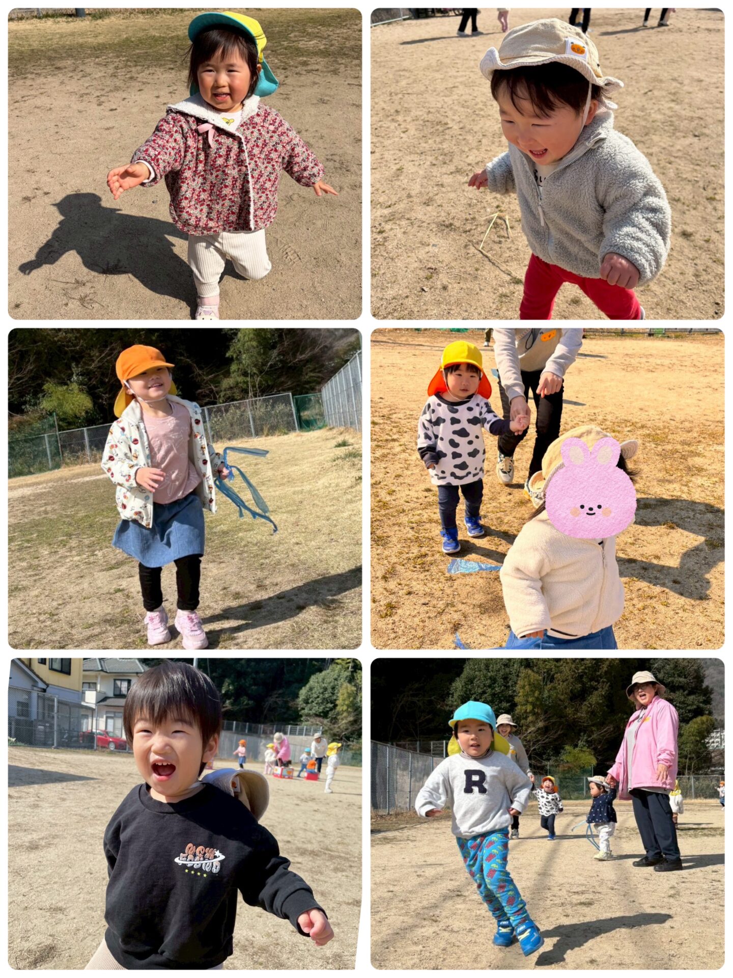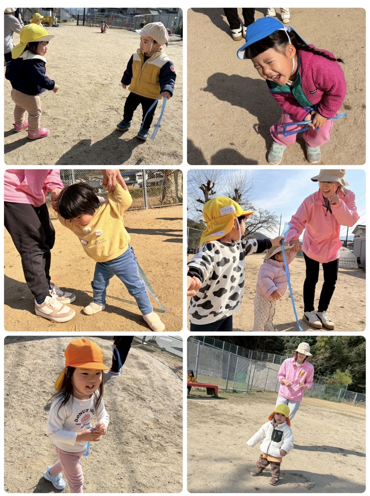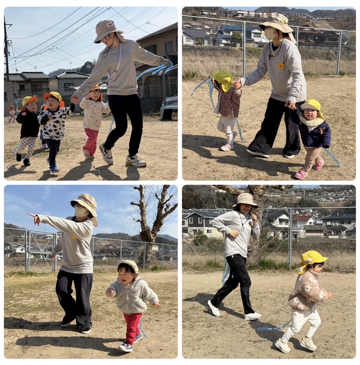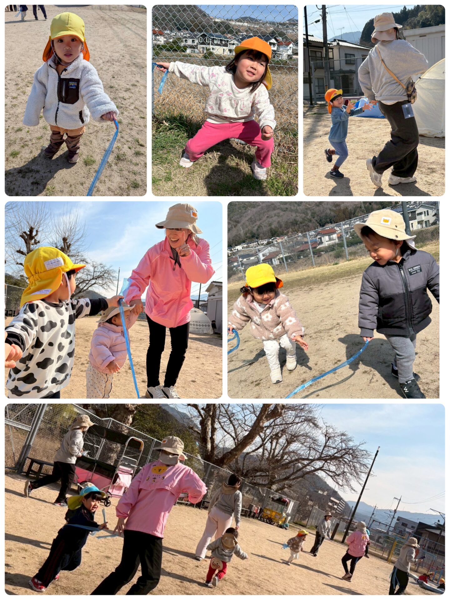 広場で力いっぱい走り、しっぽを取られないように、そしてお友だちや先生たちのしっぽをつかまえたくて一生懸命走ります♪