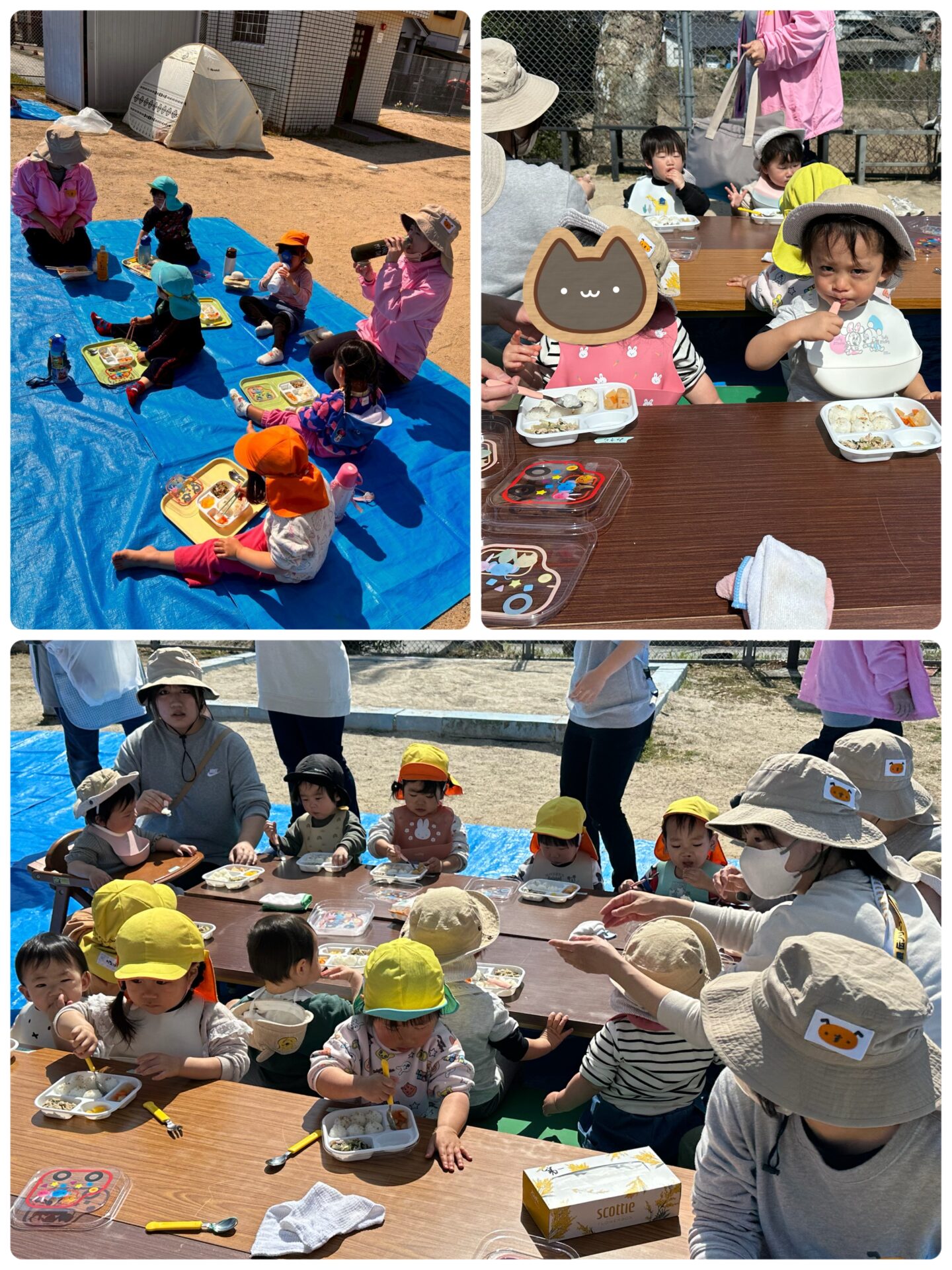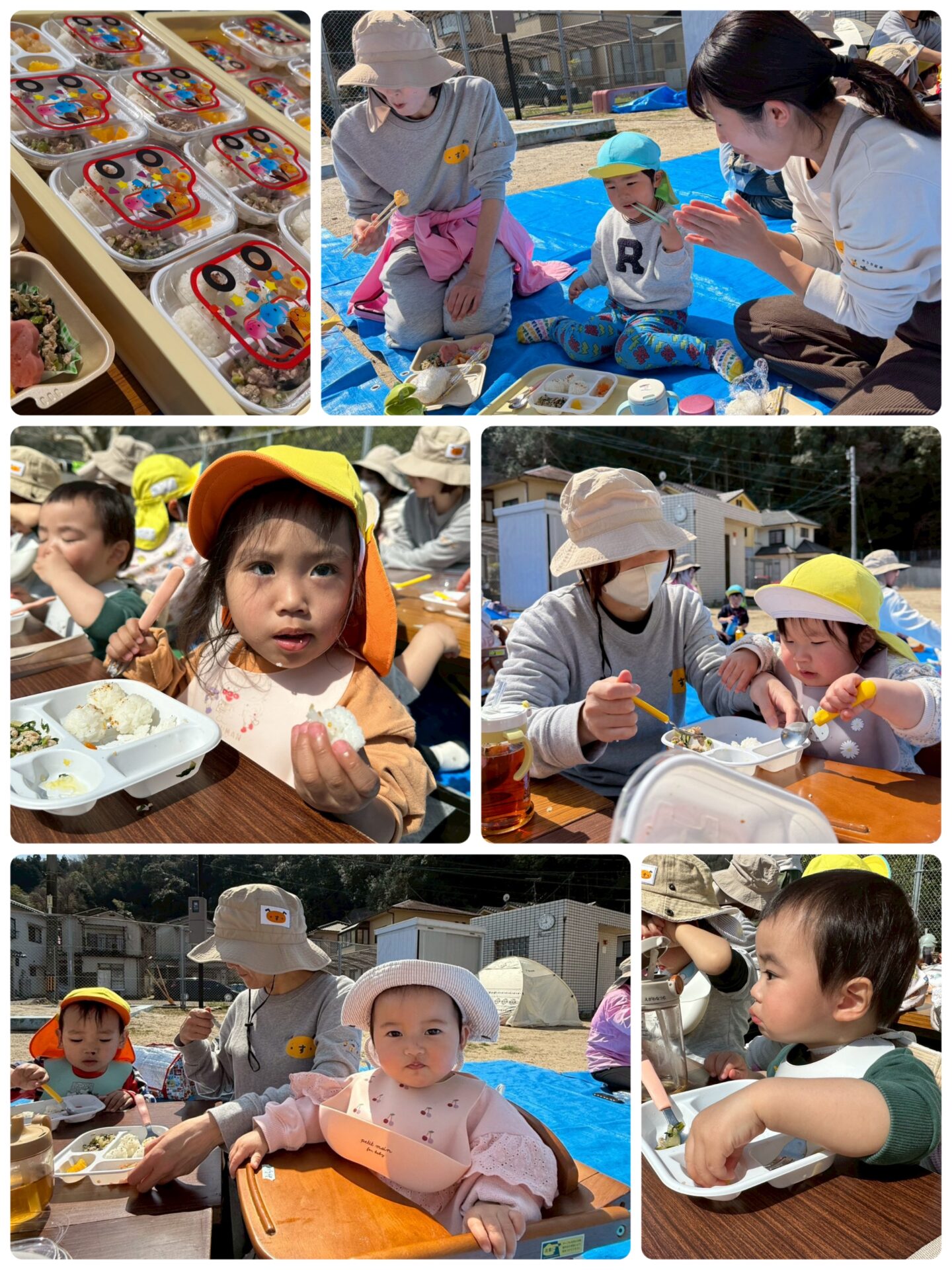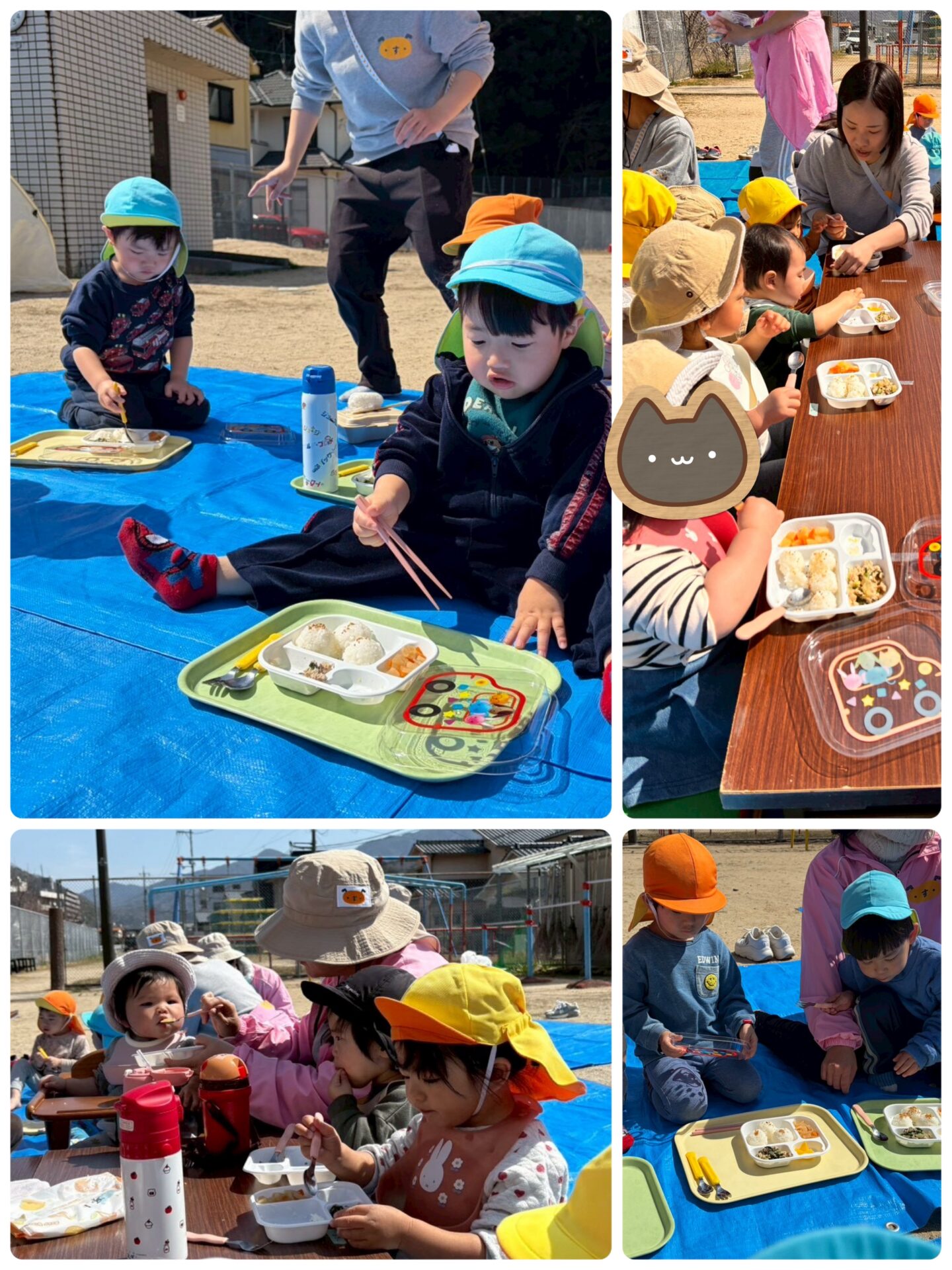 遊びが終わる頃、大園長先生と給食のN先生がお弁当を作って持ってきてくださいました😄