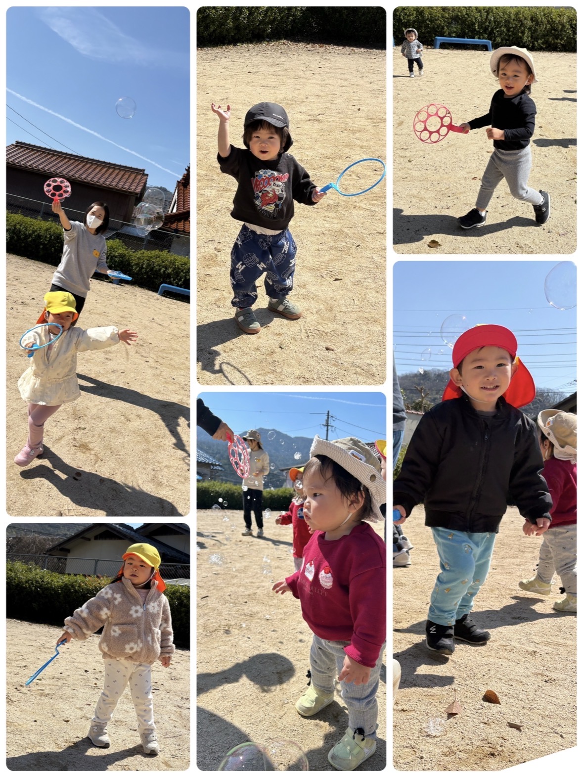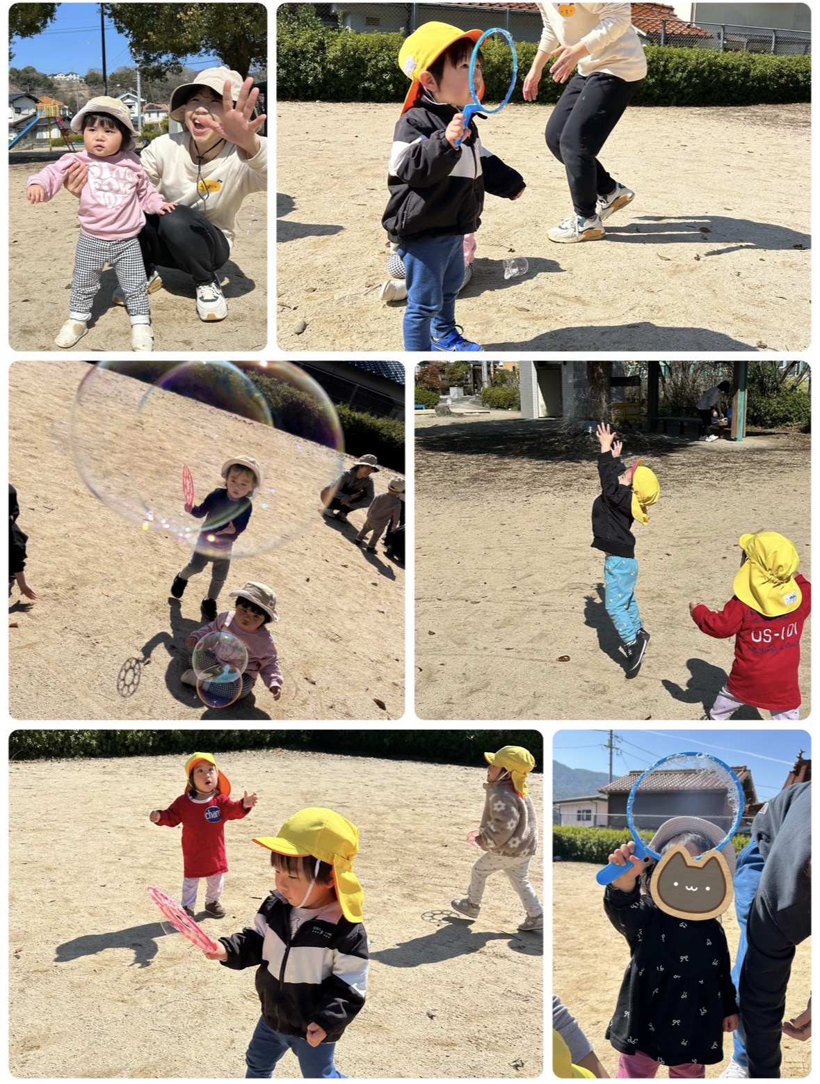 しゃぼん玉を追いかけたり、消えてしまって、どこにいった?💦あれれ?…と探していたお友だちもいました☺️とっても楽しい!嬉しい!という表情がたくさん見られました✨